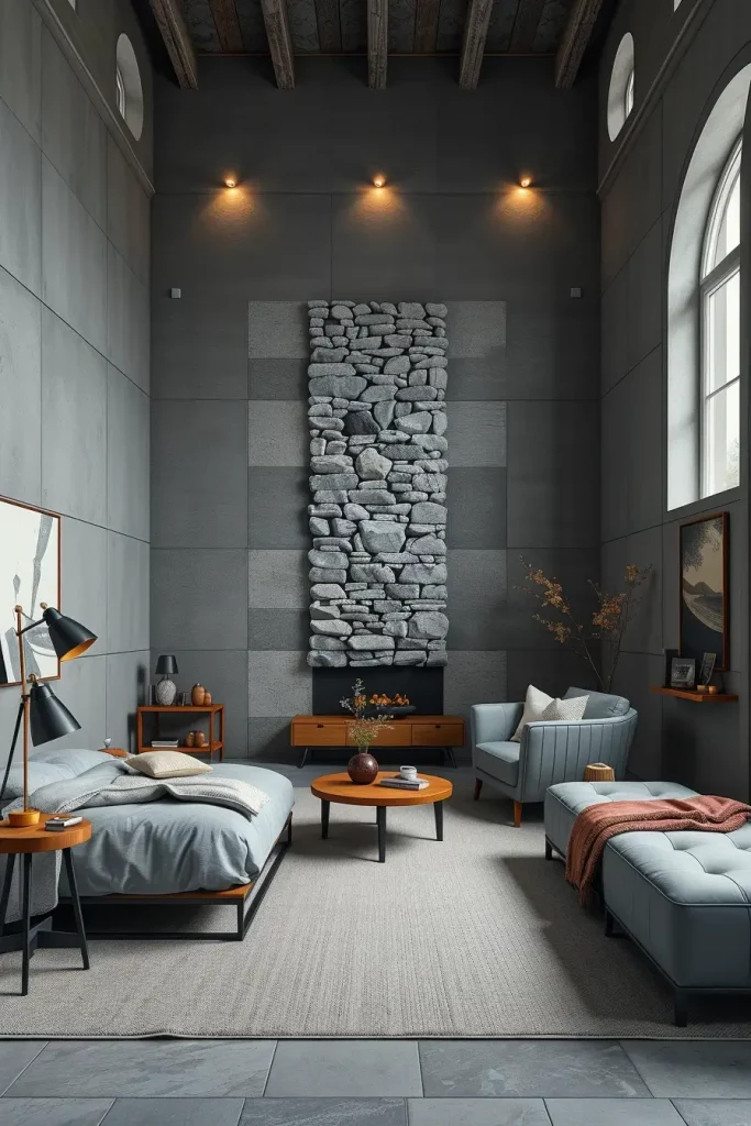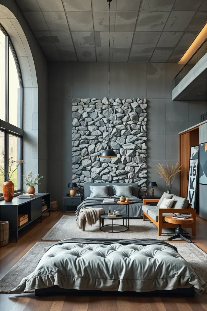Concrete And Stone Elements In Modern Gray Bedrooms