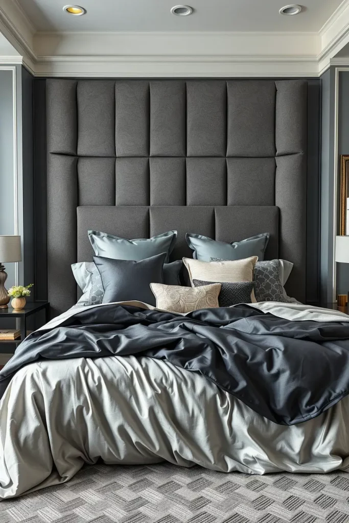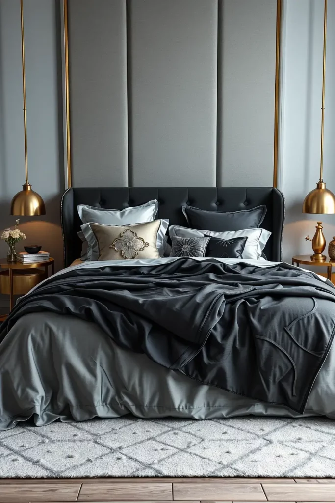 Layered Bedding Ideas In Charcoal And Silver Tones