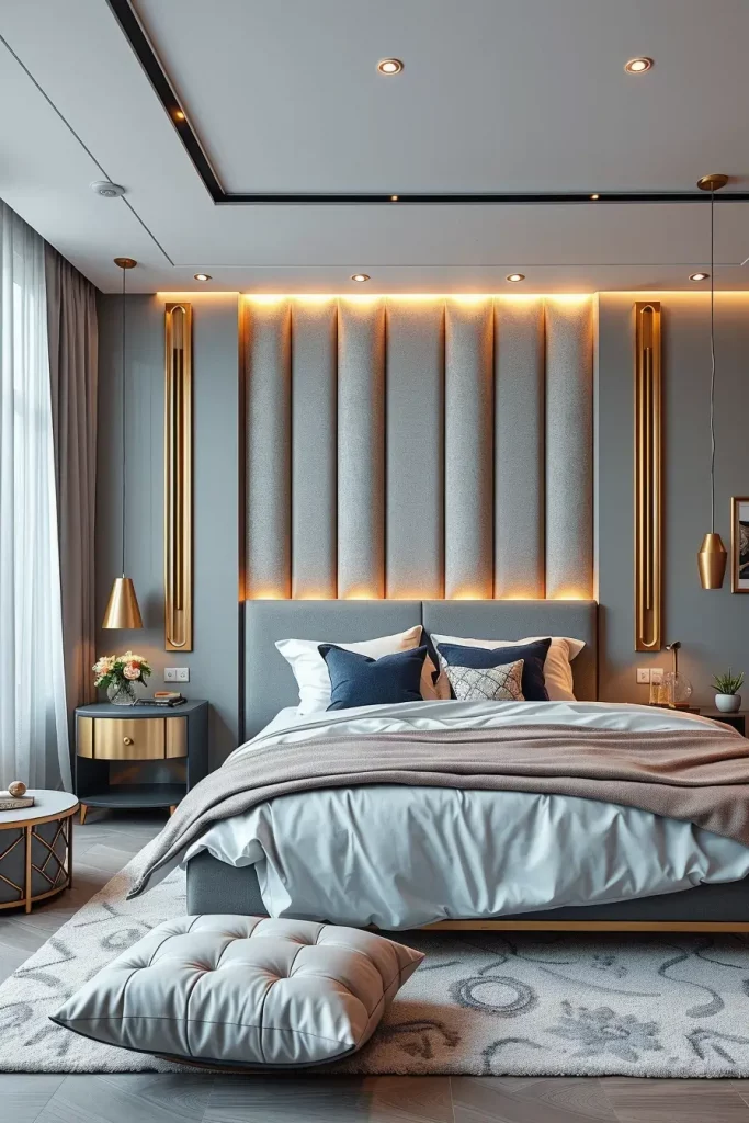 Headboards have ceased to be useful but rather have become the whole designer gray bedroom look. I tend to suggest slim, architectural headboards, including vertical, channels, curved, or even built-in lighting. These features bring rhythm and contemporary savour to the sleeping area.