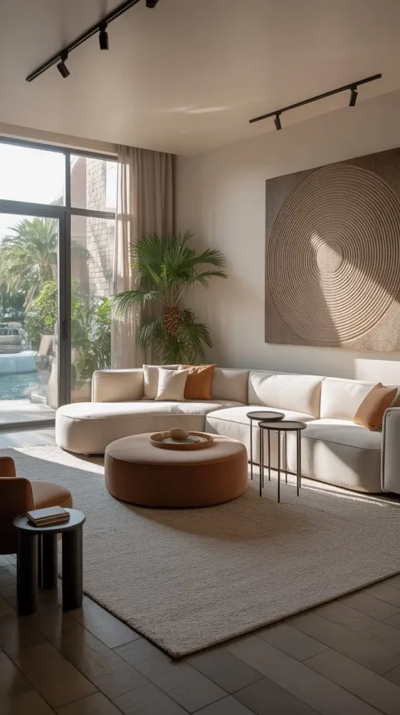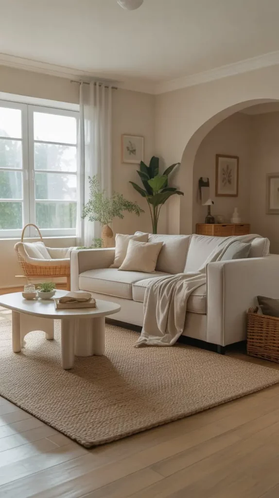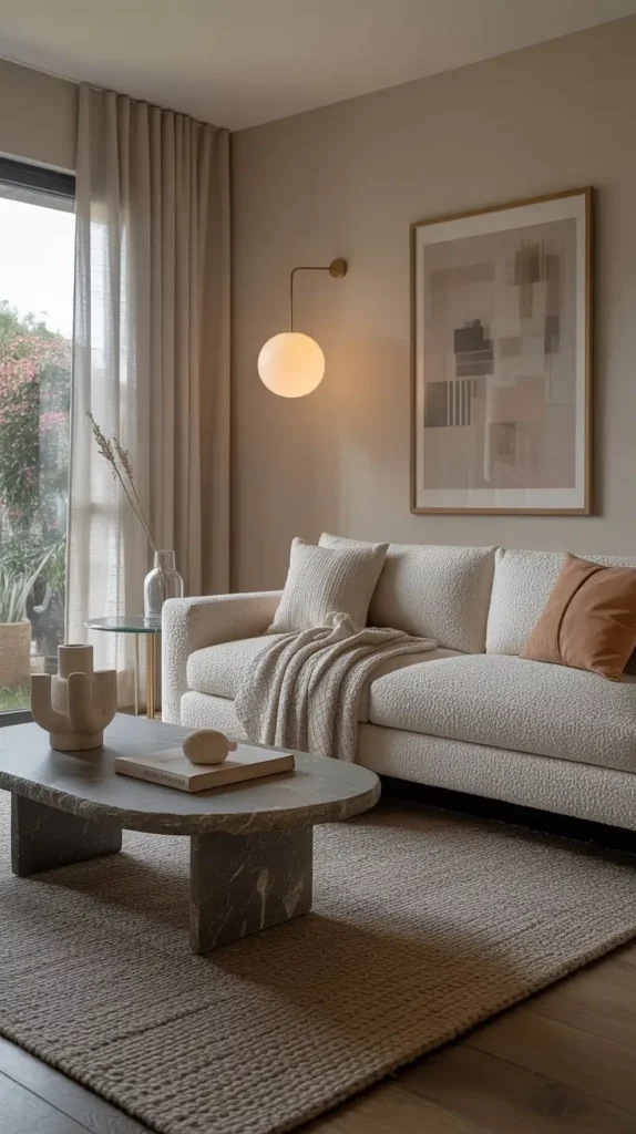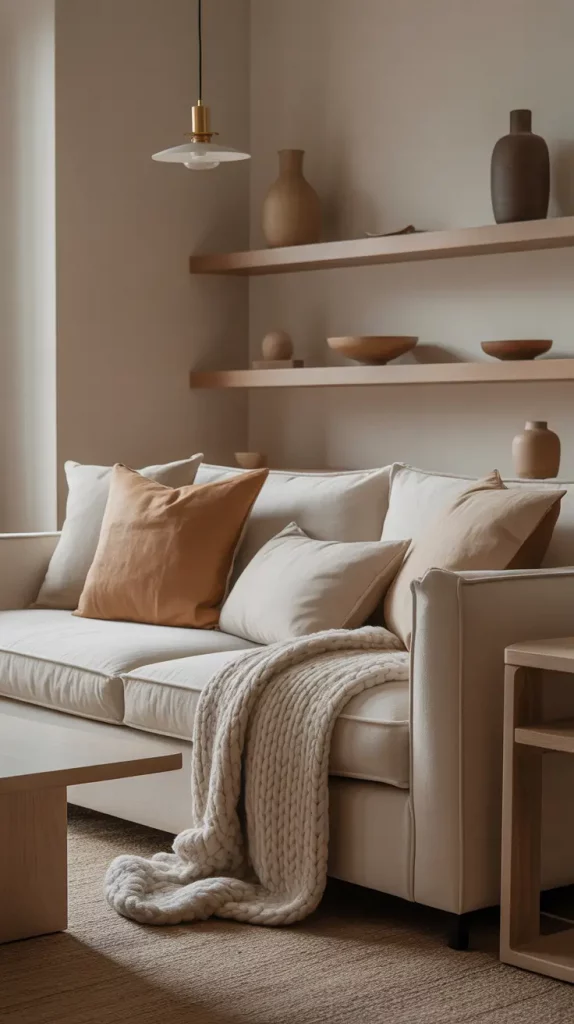 Mostly, I use natural wood, matte metal and layered fabrics when decorating neutral sofas. The space is not made smooth, as linen curtains, textured flooring, and the use of ceramics prevent the surfaces. Neutrals allow the addition of statement lighting or bold art without overwhelming the room due to the versatility of the neutral.