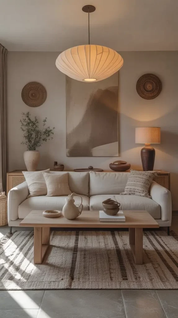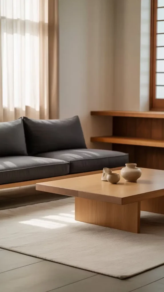 The interior design of low-profile sofas should be selected with care: wide coffee tables, natural wood accents, and soft area carpets, as well as neutral-coloured accessories are all very well. Ceramic vases, floor lamps with curved lines and low-key wall art are used to continue the sense of calmness. I tend to use muted colors and textile fabrics to further increase the grounded and soothing design.