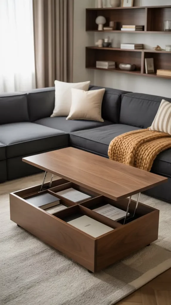 I normally combine storage sofas with flexible furniture, such as lift-top coffee tables, small shelving and wall mount lightings. Solid fabric upholstery- durable fabrics like performance blends of cotton or linens that resist stains are durable and ensure style. I prefer to keep the design together with such complementary materials as wood, woven baskets, and natural textile accessories.