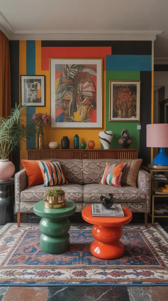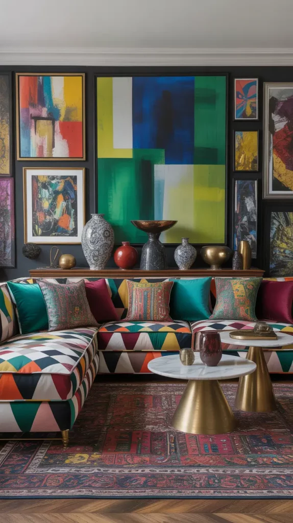 In order to complement a maximalist sofa, I would use a complementary accent of decor like colorful artwork, sculptural tables, or accent lighting to support it. The trick is to get non-visual chaos not visual chaos. I tend to buy furniture that is solid-colored to have the patterned sofa as the focal point of the design.
