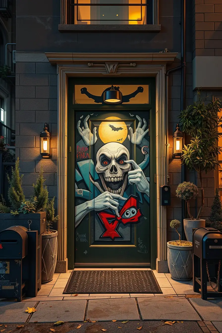 To the urban dwellers, I consider artistic murals on doors as an innovative and space-saving method of celebrating Halloween in a bold manner. These murals tend to be graffiti-like drawings, surreal monsters, or stylized haunted cityscapes and they are suited to apartments or brownstones that have little porch area. The good thing about this method is that it is able to integrate well with the city architecture and in most cases it complements it instead of breaking it.