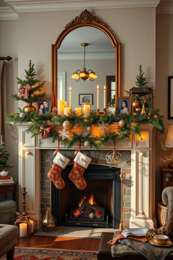 I also believe that the mantel is made more personal by adding candleholders, family photos frames or small seasonal sculptures and placing them next to the lights. The golden color is a reflection on the metallic objects such as brass candleholders, which gives it an extra gloss.