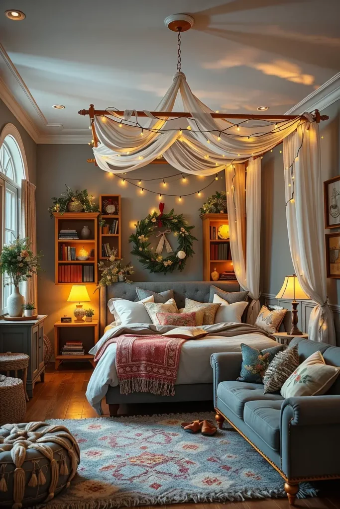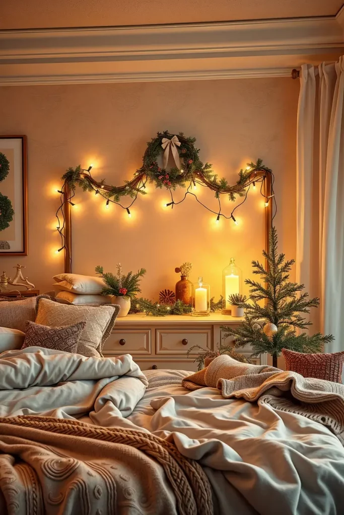 I will tend to collect string lights over headboards, canopy frames or mirrors. Moreover, I prefer to put lighted garlands on dressers or small bedside tables. Their cheerful mood makes the place seem home like, turning bedroom into a peaceful escape in the middle of the hectic holiday.