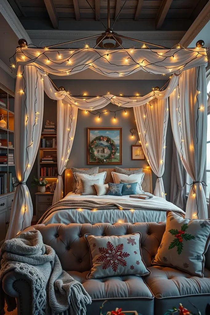 Fairy lights are among my personal favorite ideas to make a magic in holiday decor. I always use warm white fairy lights and I find they immediately give the effect of gentle sparkle something whimsical yet still glamorous. I like them particularly in bedrooms, reading nooks or living rooms where you would like to bring some light but this should not be too intense.