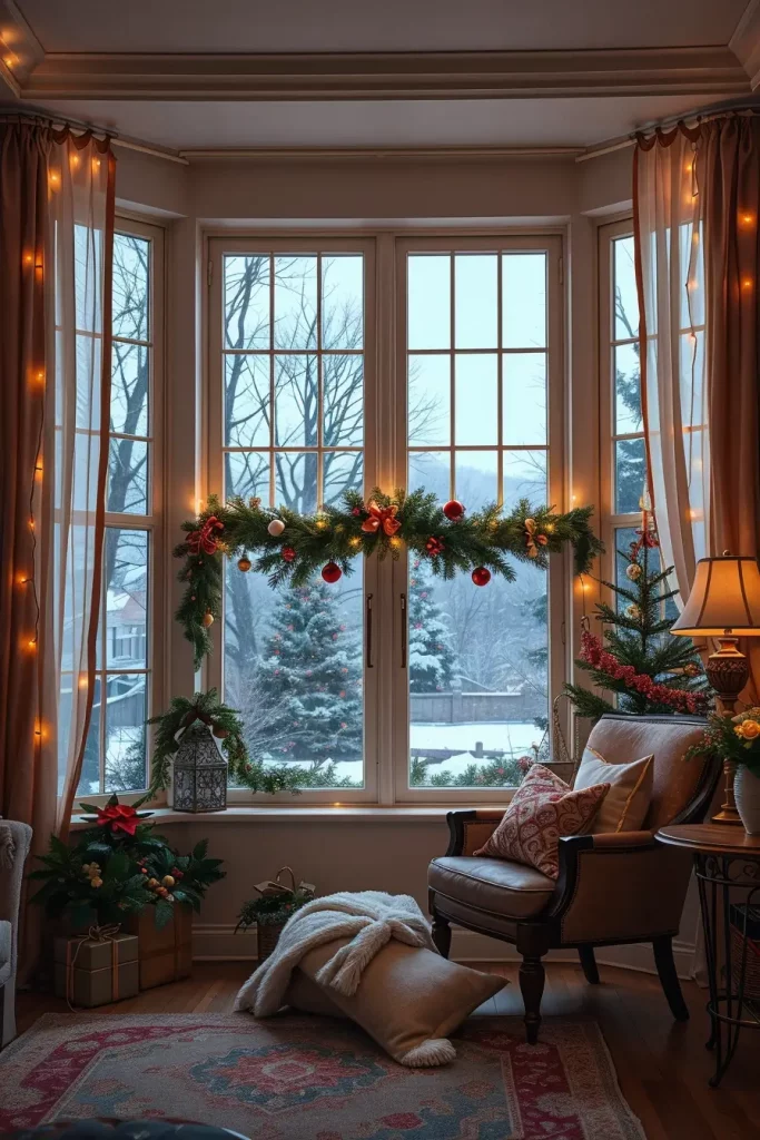 The decoration of the windows is one of the most ignored fields, yet warm white Christmas lights can turn them into a real core of the room. I also put up string lights as frames or put lighted stars in order to give the room a warm atmosphere that illuminates both the interior and the exterior.