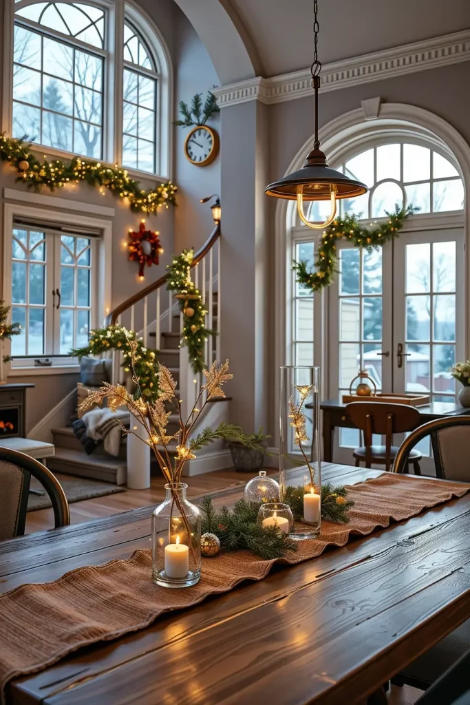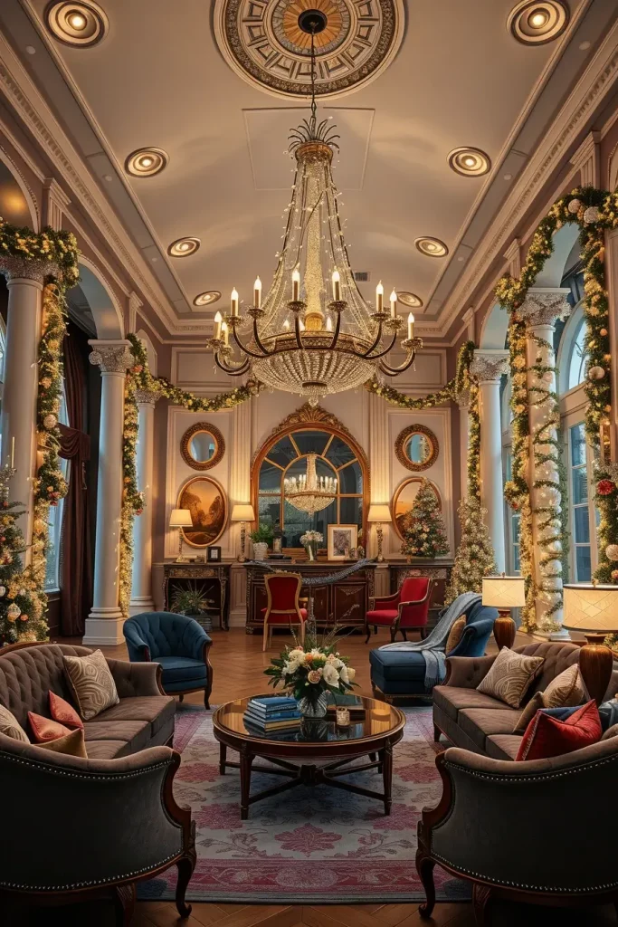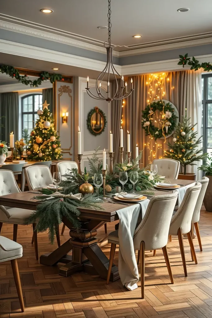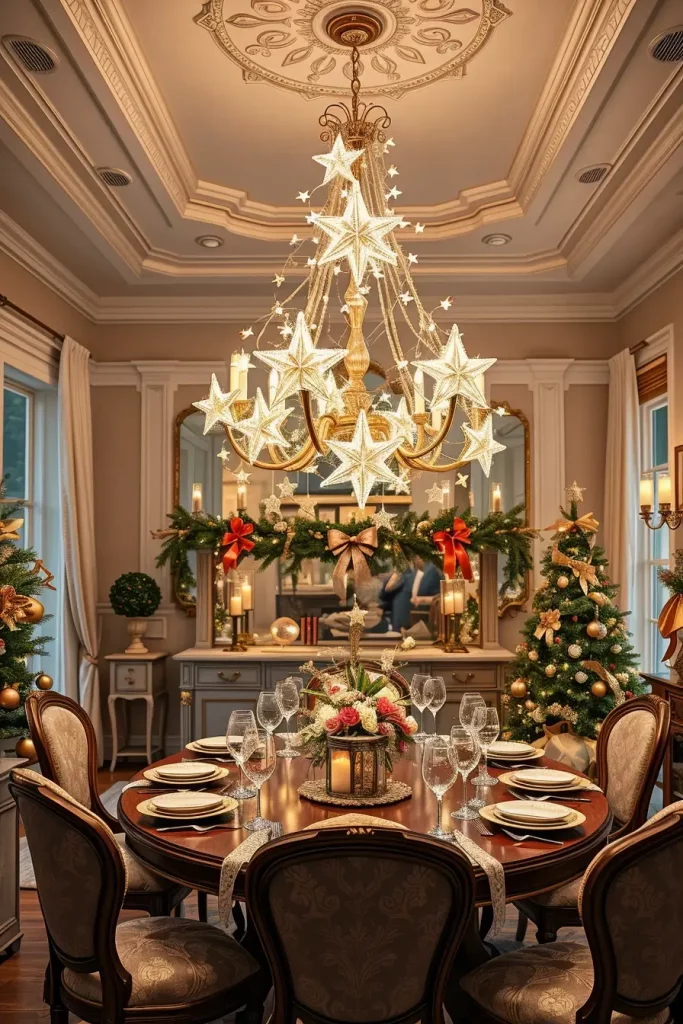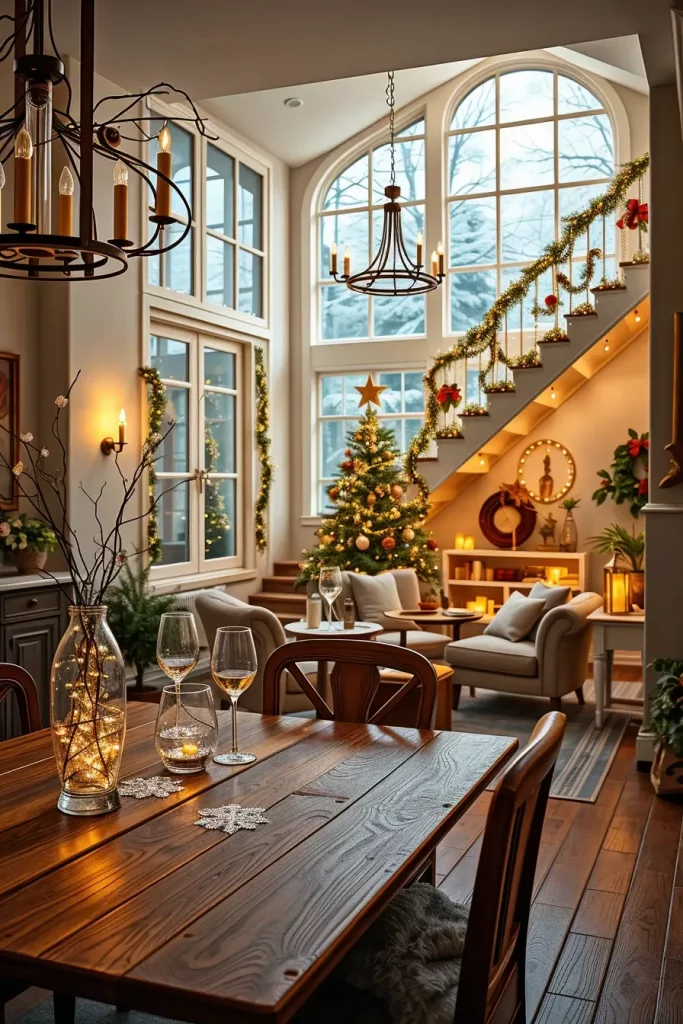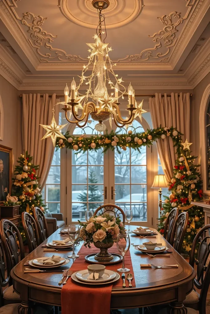 In addition to chandeliers, hanging decoration such as the lighted stars or lighted wreaths may be added to the ceiling decor. The pieces are appropriate to be placed over the dining tables or stairs where one can view them in various angles. Combining them with garlands or ribbons would make the appearance both of a celebration and unified.