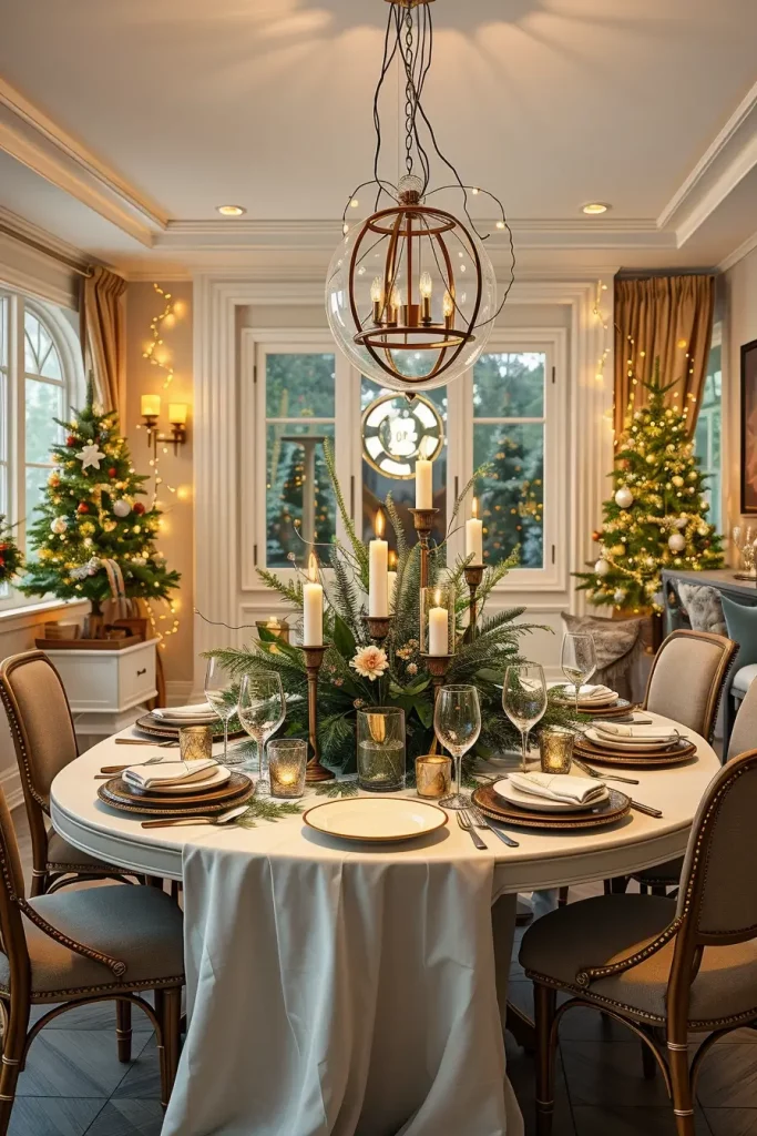 To this part, I would also suggest to include light-filled centerpieces, like glass jars with mini string lights or fairy light-lined candleholders. This little detail unites the decor and does not overwhelm the table with the festive theme.
