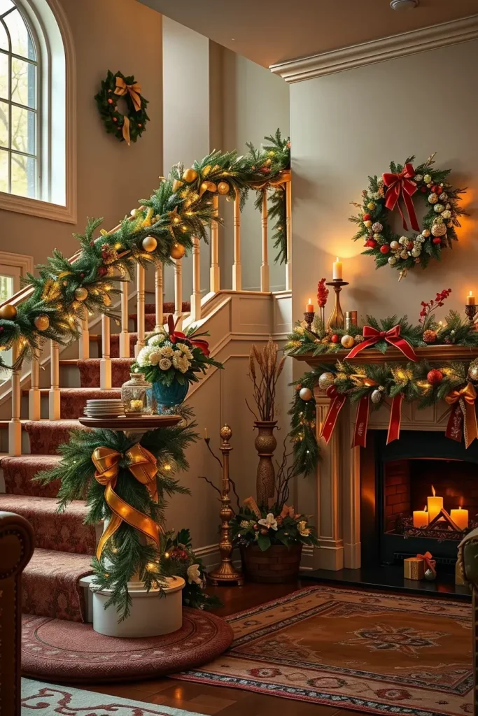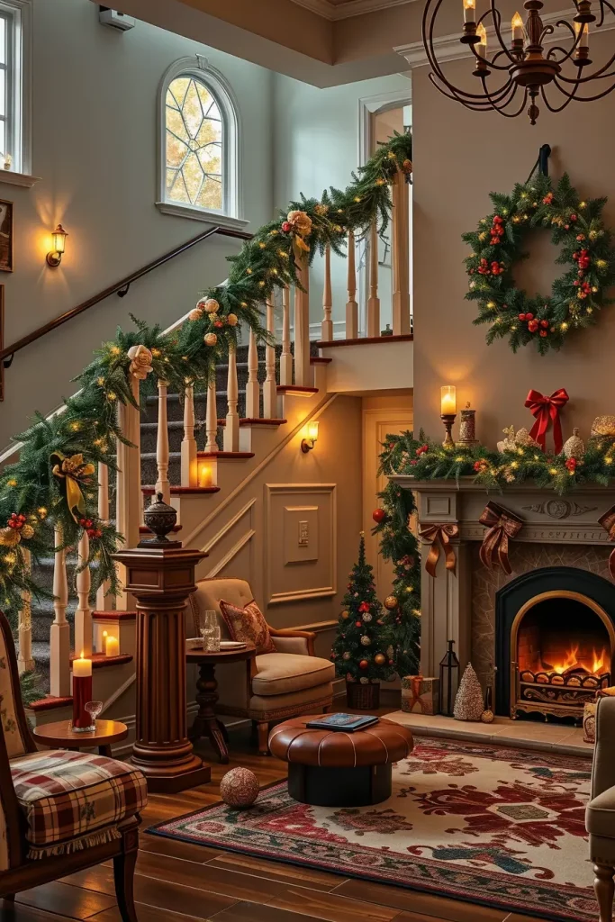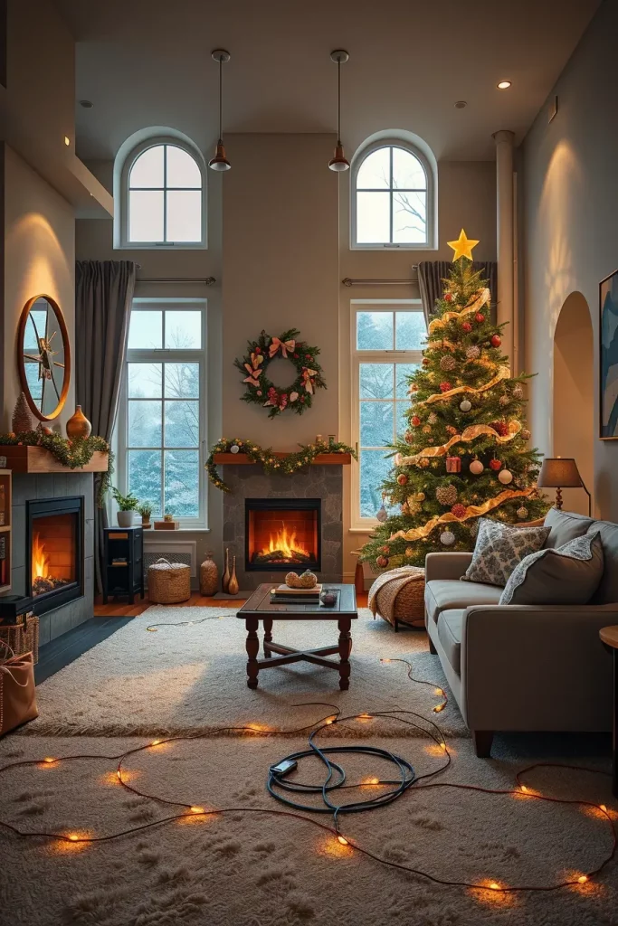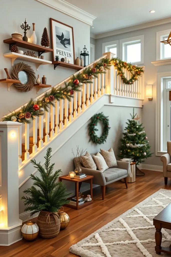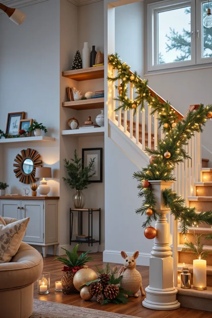It is a style that I prefer to use on staircases, hanging garlands of lights along the banister, and door frames and mantels are not an exception. Light wreaths may be adorned on the front door, above fireplaces, or even on a wall in the interior to make little glowing centres. Pinecones or ribbons could also be added to the lights to add a more detailed look and also look layered.