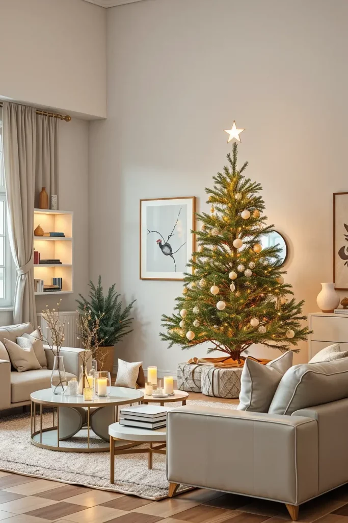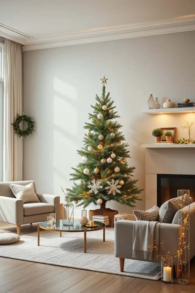 Minimalist holiday decor is very nice with warm white, and it is simple and clean lines. I frequently suggest such a solution in the contemporary apartments or in a smaller place where a messy appearance would be overwhelming. The lights are also elegant and do not entail excessive ornaments.