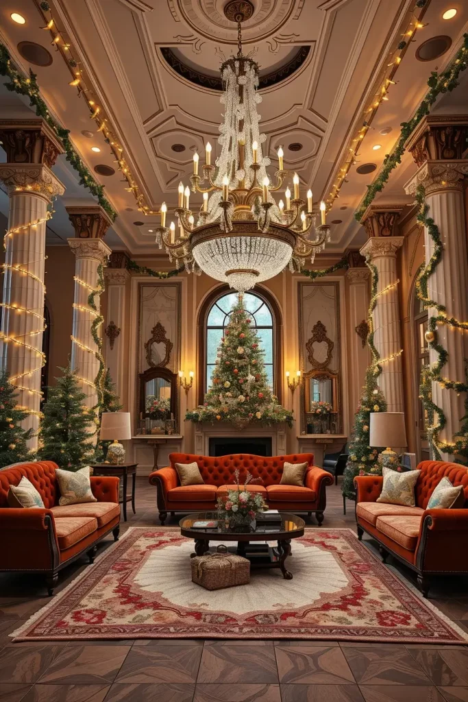 At the other extreme end, the luxury holiday decor is successful when stacked with warm white lights. This is an ideal style in homes or areas where excessiveness is the aim. I tend to mix light garlands, chandeliers and many coats of illuminated decor to produce a show-stopping holiday design.