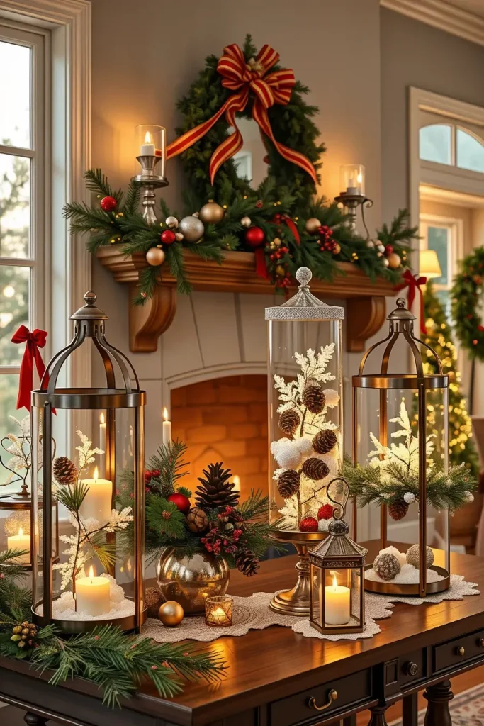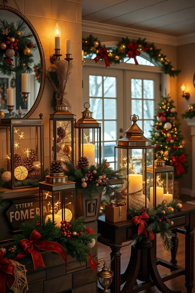 I normally utilize glass lanterns, mason jars or even metal candle holders. I can add accents of glowing pinecones, ornaments or even faux snow by putting string lights in them to make them look like they were made custom. These lanterns are suitable on mantels, entry tables or steps outside the house where they are very attractive and warm.