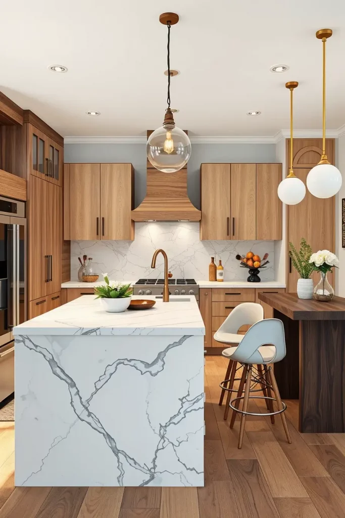 Statement Islands With Contrasting Wood Tones