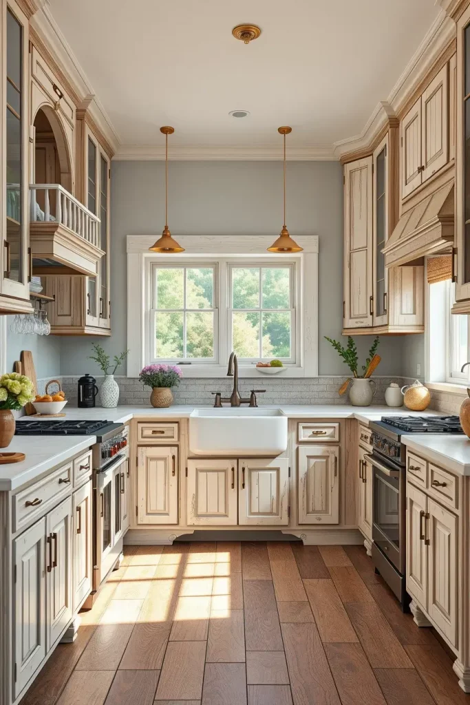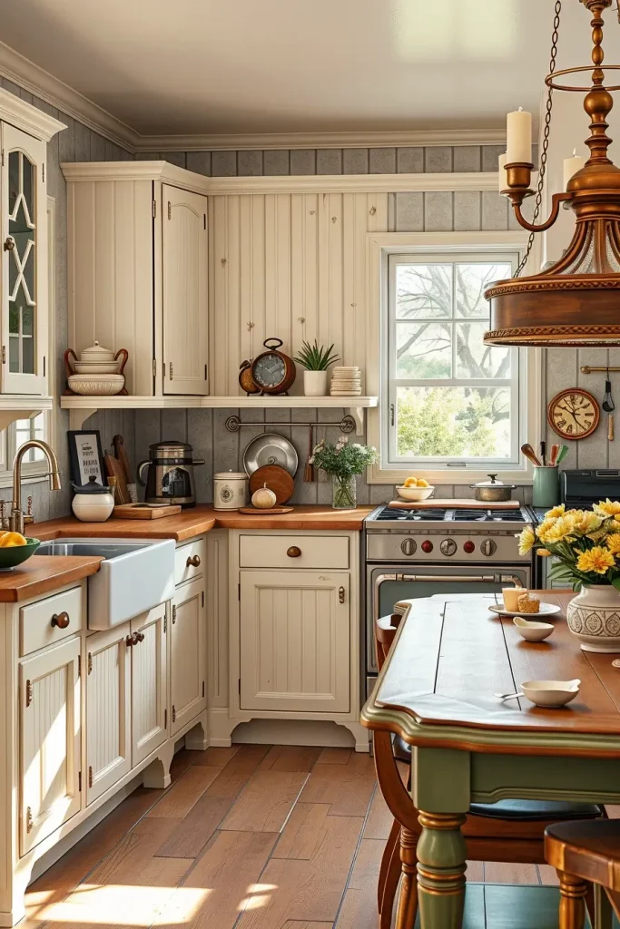 There’s a nostalgic beauty in vintage rustic cabinetry, especially when paired with antique metal pulls. My approach to the space was to recall early 20th-century craftsmanship, which truly appeals to those who want a time-honored design.