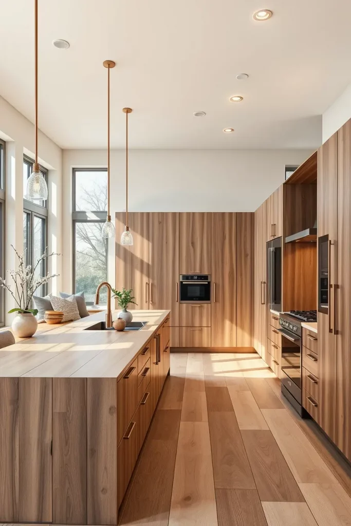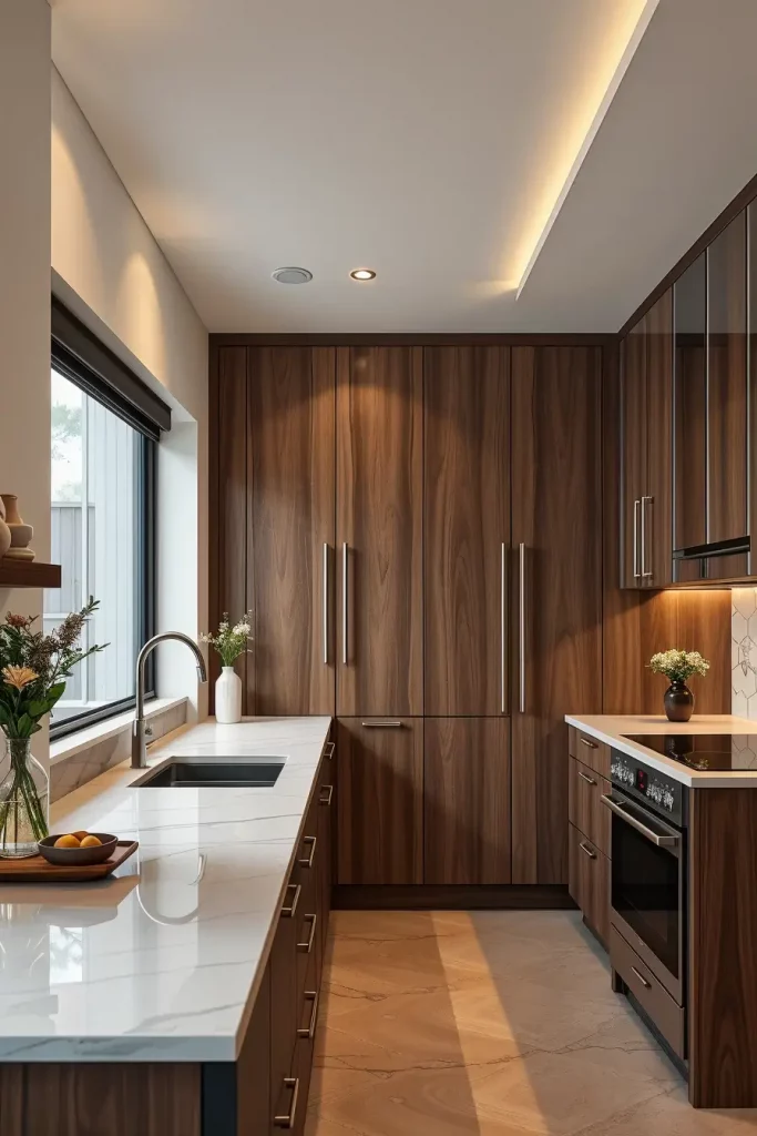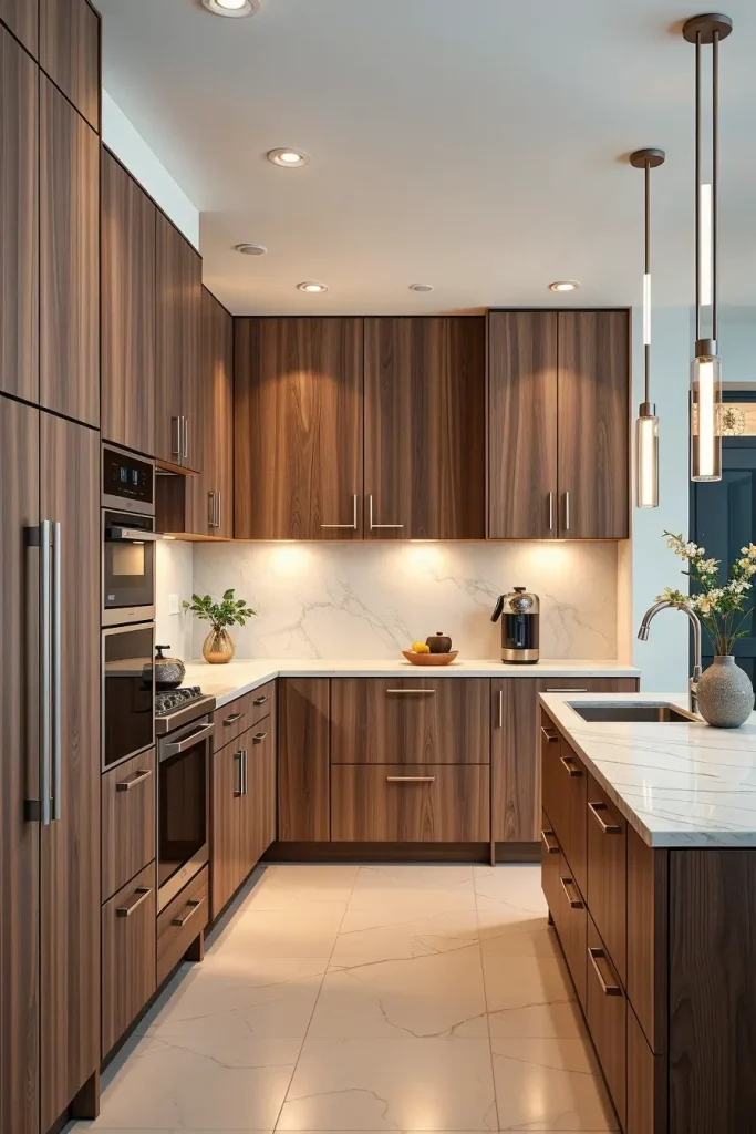 Sleek Handleless Wood Cabinets for Refined Kitchens