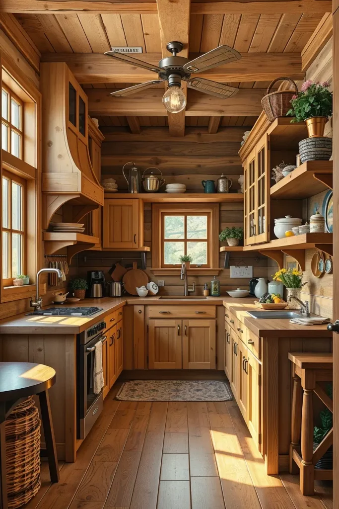 Compact Rustic Kitchen With Custom Timber Cabinets