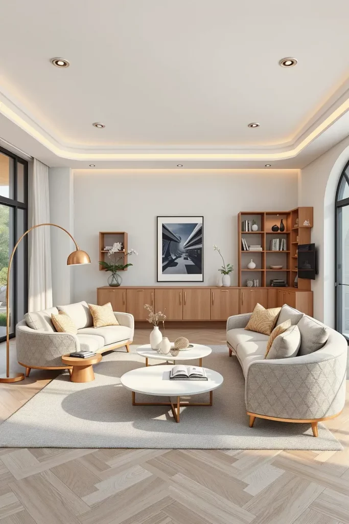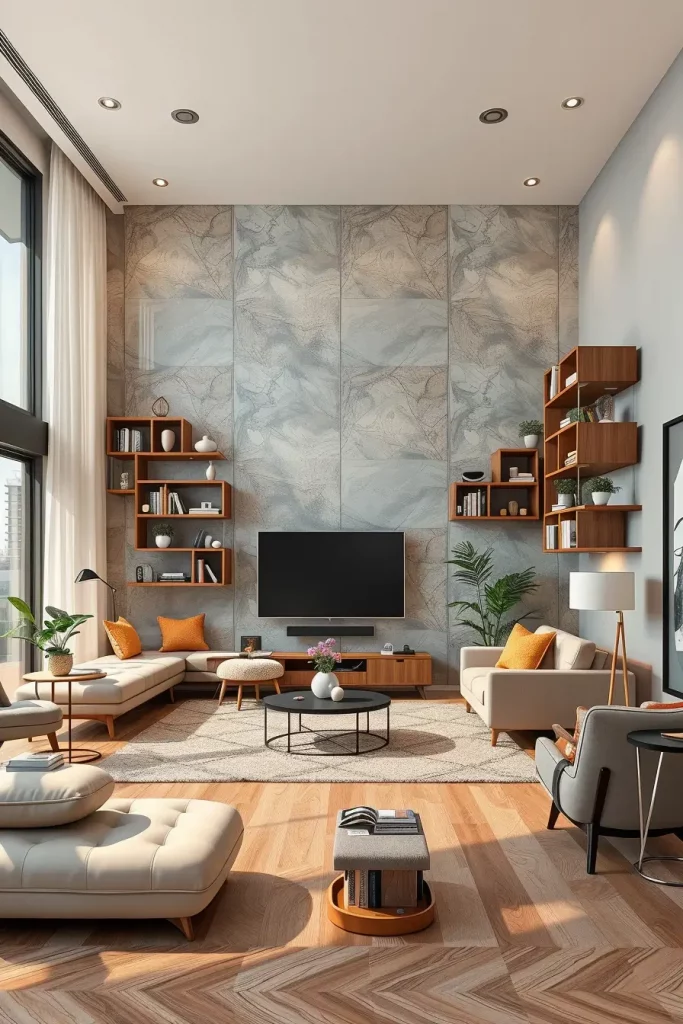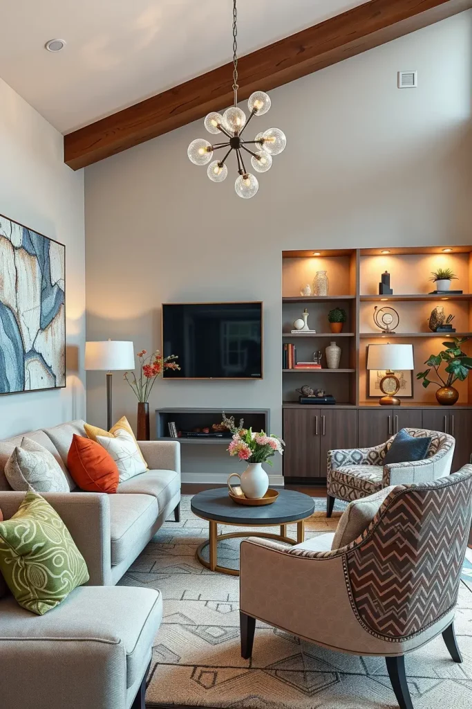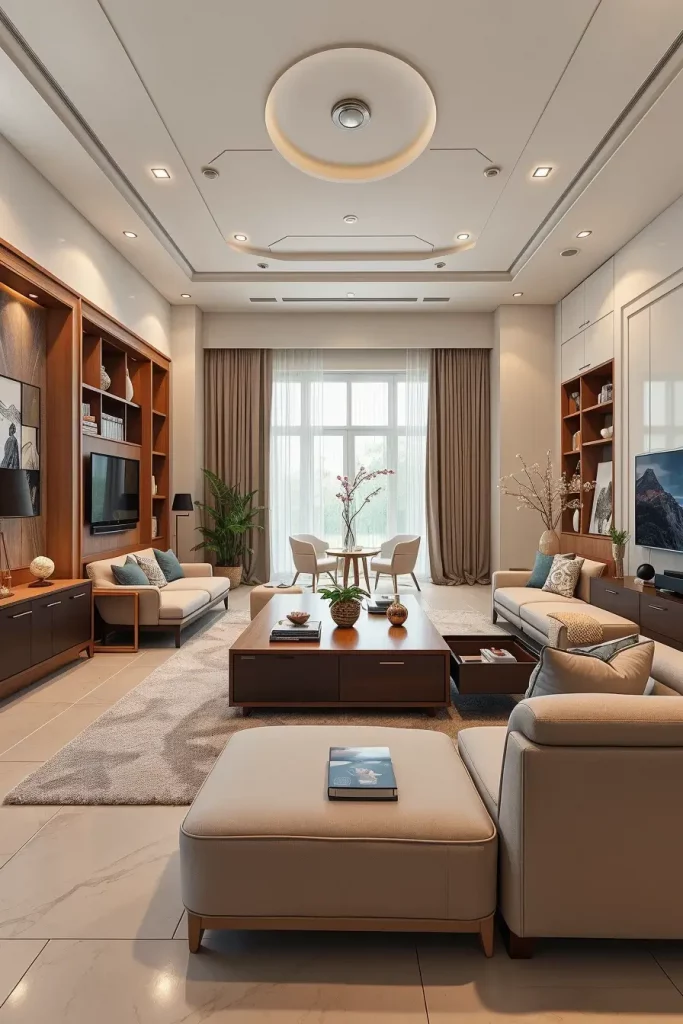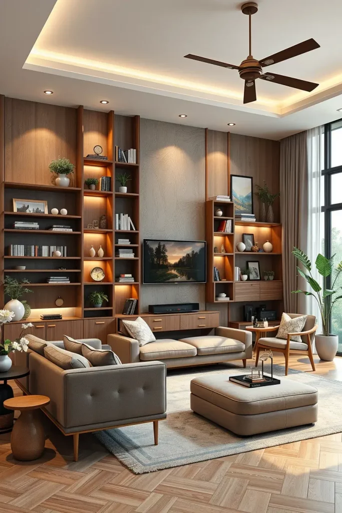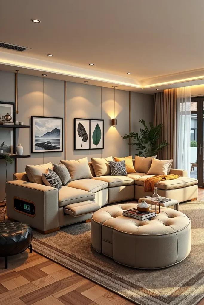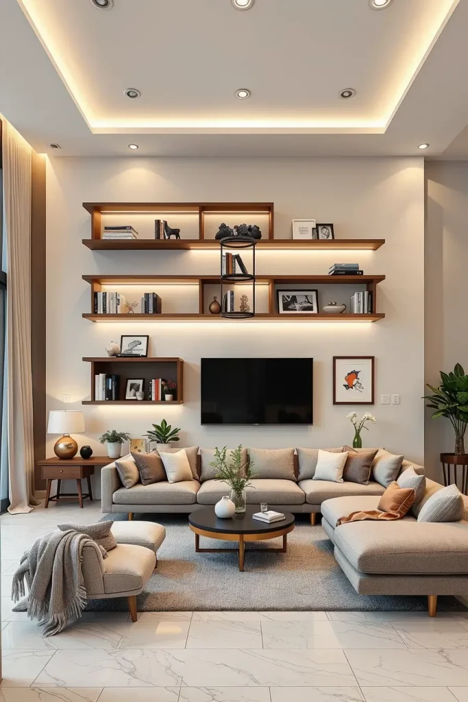 A modern living room is most likely to possess flexibility as one of its most useful features. Modular furniture and shelving systems enable homeowners to redesign the space, according to their lifestyle at hand. I usually suggest pieces that are based on modularity since they easily fit changes in the family, entertainments, or home-office arrangements.