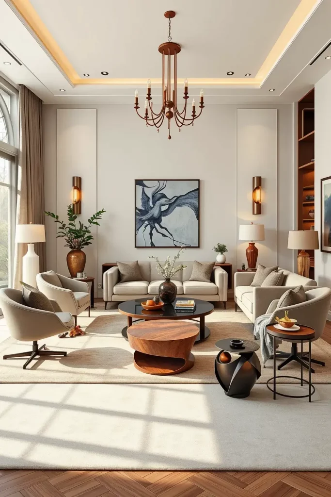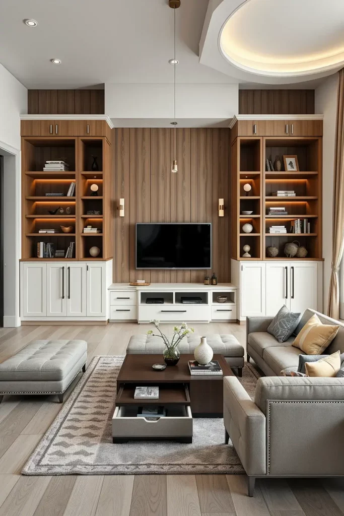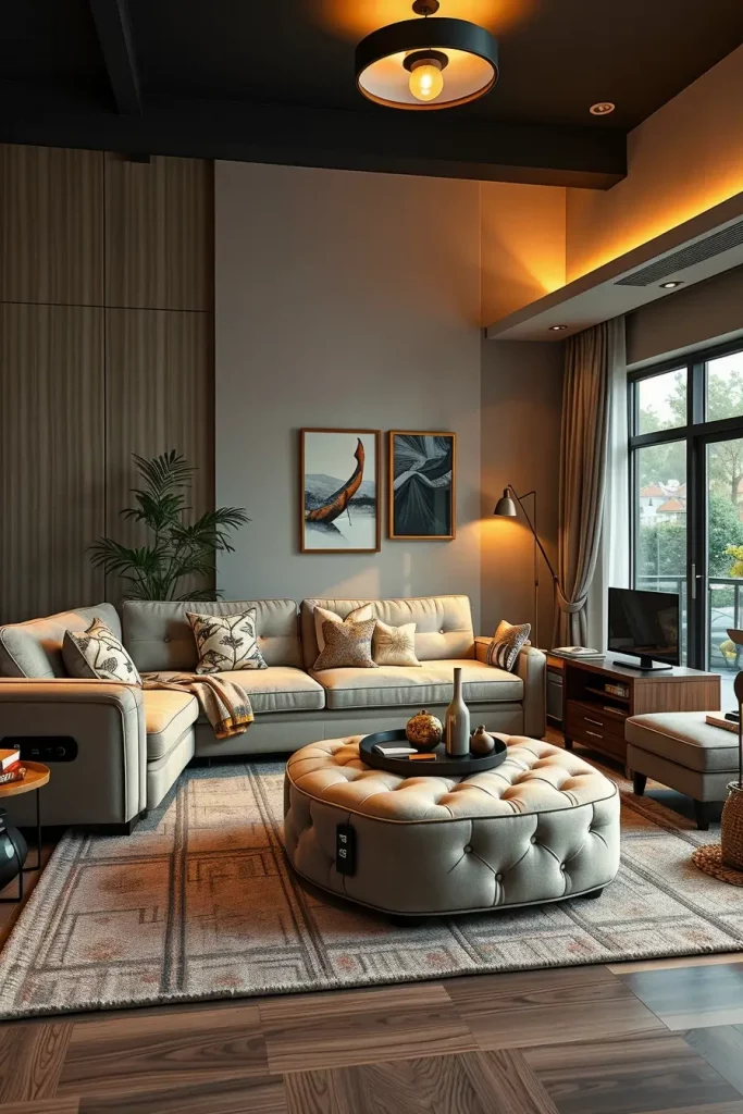 I would also include that a coffee table that has wireless charging pads or hidden storage of the tech stuff could be a futuristic yet nuanced addition into the living room.