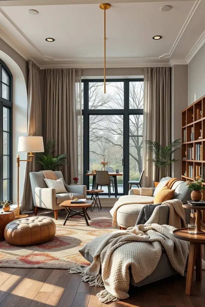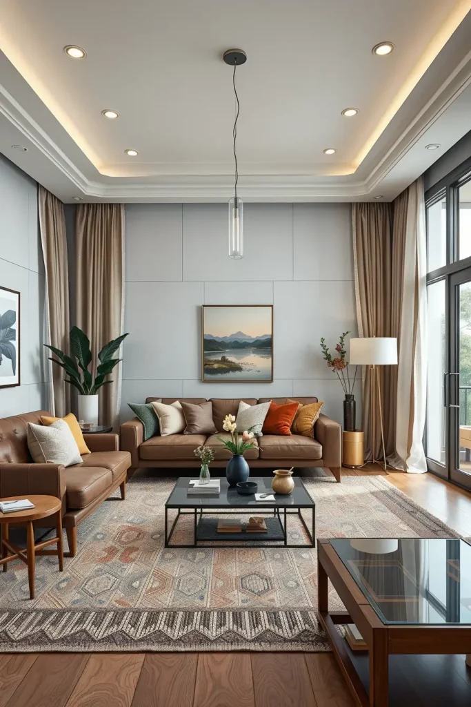 Layering textures is one of the surest methods by which I can make a living room interesting in my work. Leather, woven material, soft velvets, and textured throws are all used to give three-dimensionality. Layered textures are taking a centre stage in modern interiors as of 2026, and have created a space that feels comfortable and energetic.