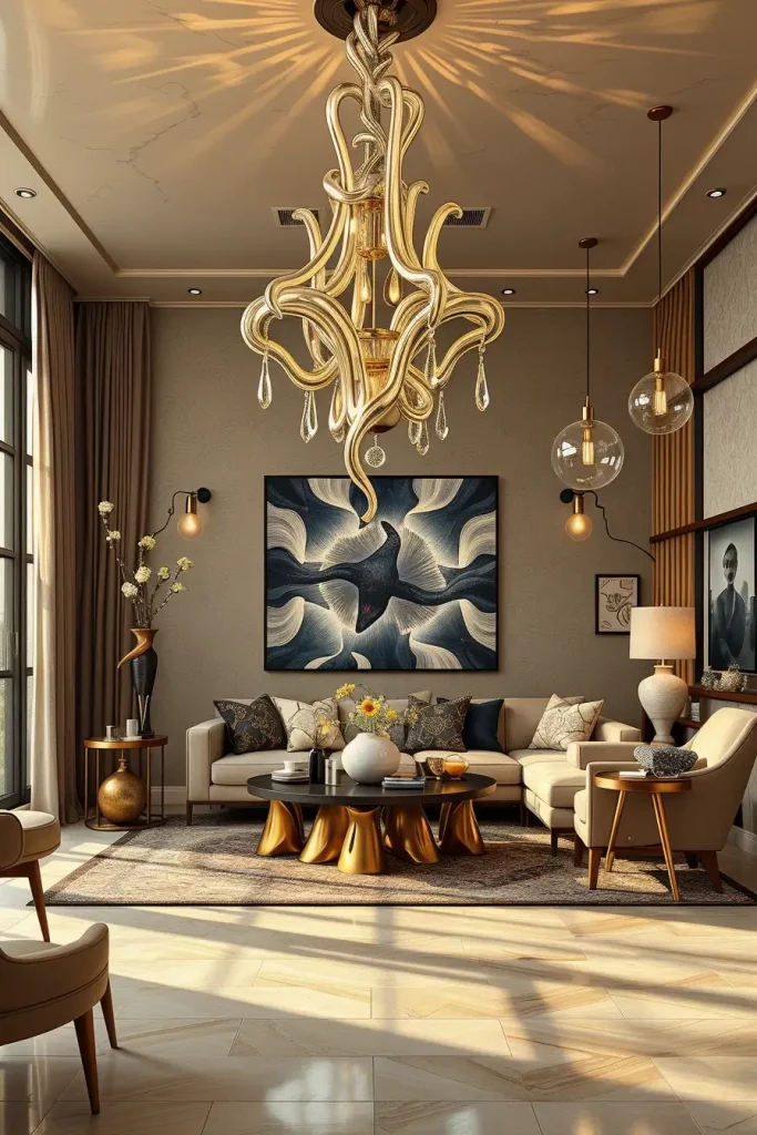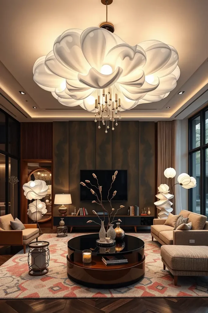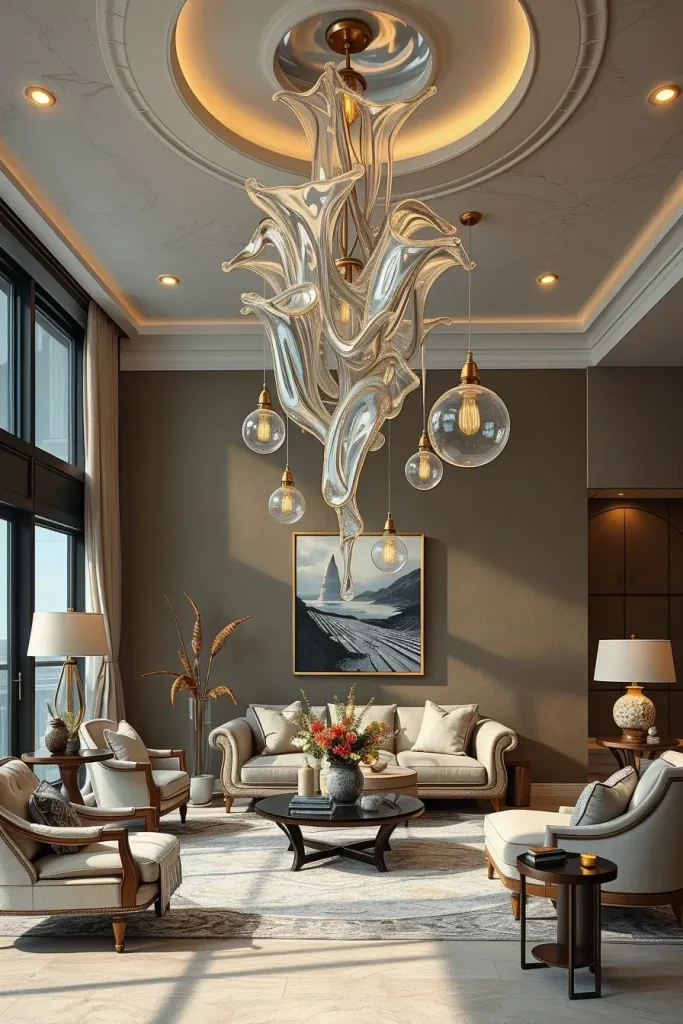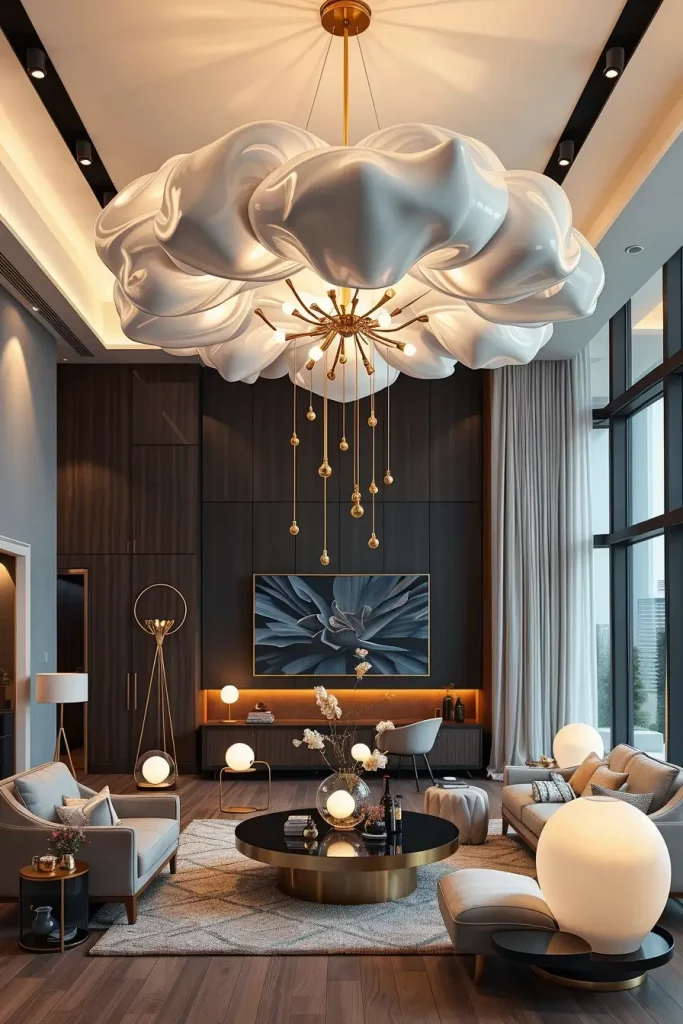 Lighting is more than illumination it is about art. In a surrealist-inspired living room design, the lighting is a sculptural element which serves as the focal point of the room, turning a practical element into surreal art.