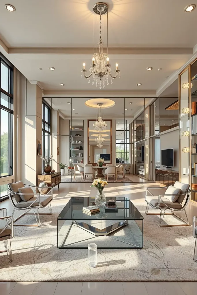 I think that transparency is the magic because it makes the room open both visually and psychologically. It is boundless, and this aspect is also in line with surrealist ideas. The use of reflective or translucent materials can be used to create a drastic sense of depth in a room according to designers like Kelly Wearstler.