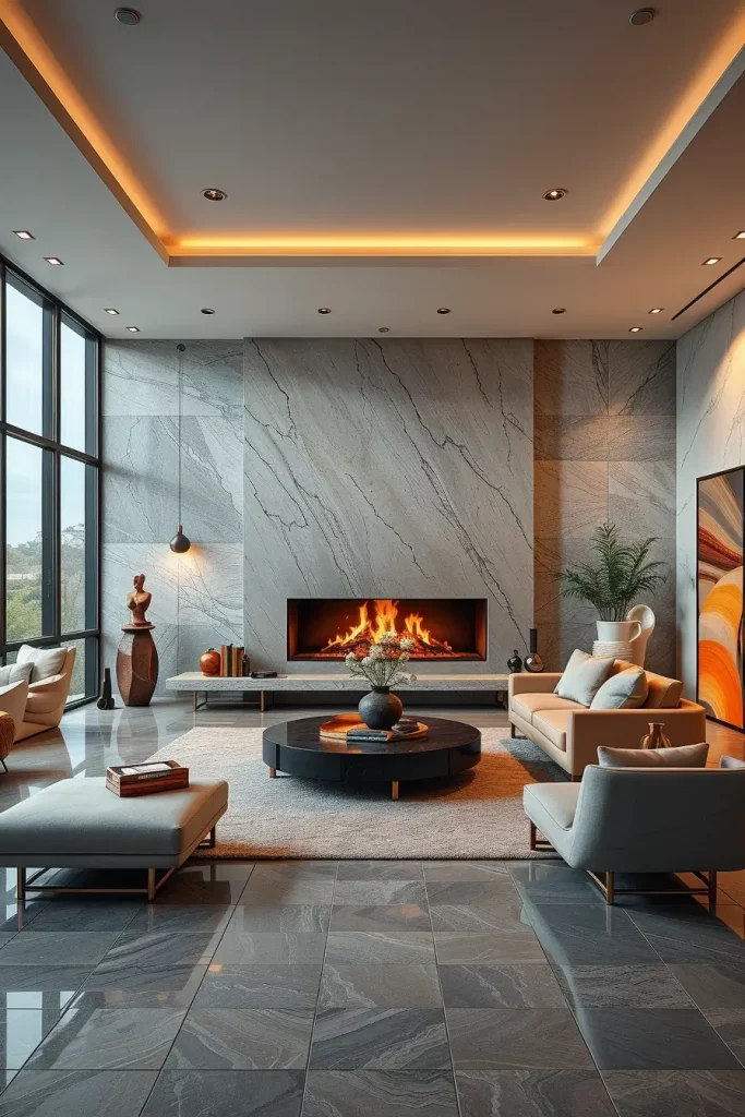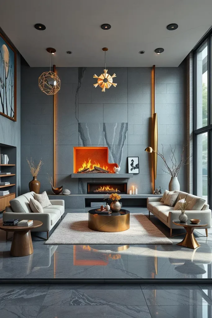 In my opinion, this concept is very effective in the process of transforming a living room into something extraordinary. House Beautiful reports that today, modern fireplaces are more of a statement than a source of warmth. A surrealist fireplace is also used as a double.