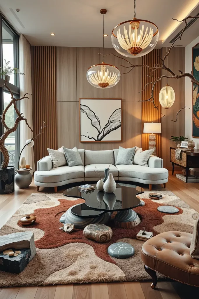 In my experience, organic design features bring in comfort in addition to intrigue. As Elle Decor notes, natural curves and organic influences smooth out the lines of contemporary interiors, making them more inviting, yet experimental.