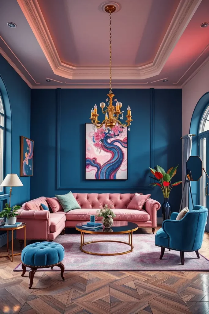 When it comes to furniture and decor, I prefer to add some bold accent chairs or rugs in unusual colors, whereas the walls and other larger pieces should be kept down to earth. This is so that the surrealist palette does not dominate the room. As an example, a pale pink couch on a midnight blue wall instantly becomes dreamlike without losing any sophistication.