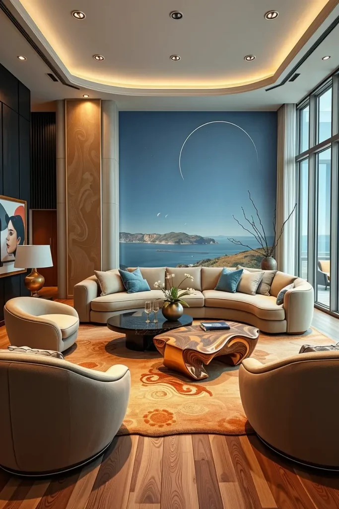 I think that the most attractive thing about surrealist living room design is that it is unpredictable. I have read in Architectural Digest that many professional designers recommend introducing one surprise element into the modern interior, whether it is an oversized mirror or an unusual chair. This is in line with the surrealist thinking where unexpected and dreamlike combinations are the focus of the room.