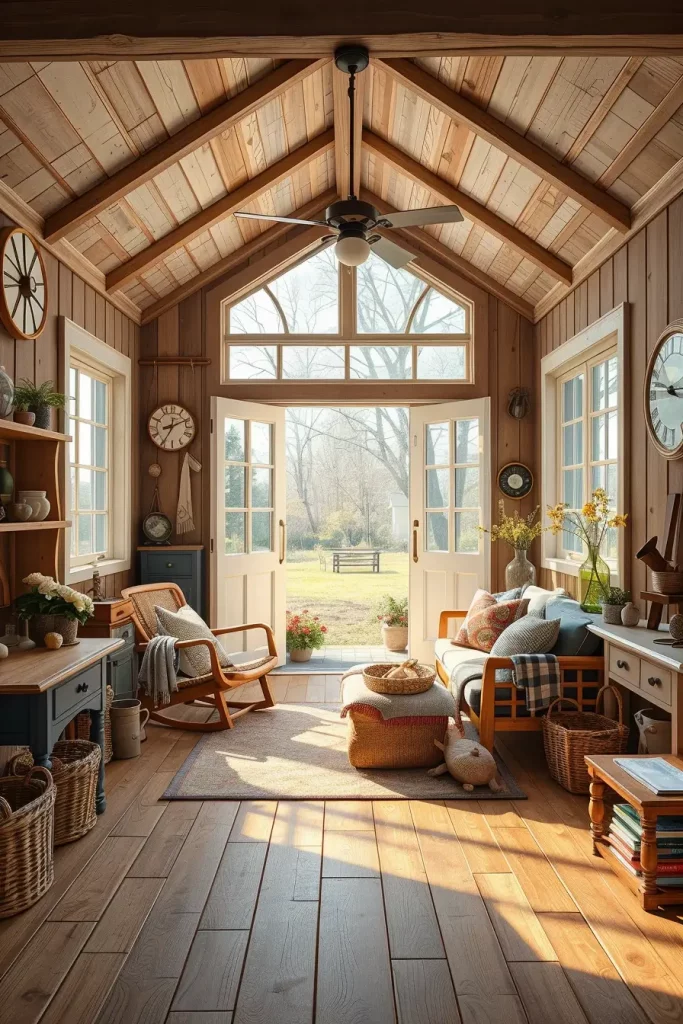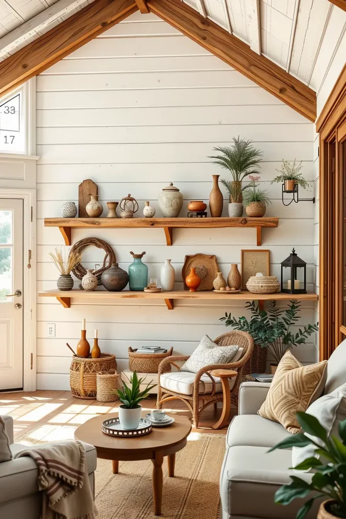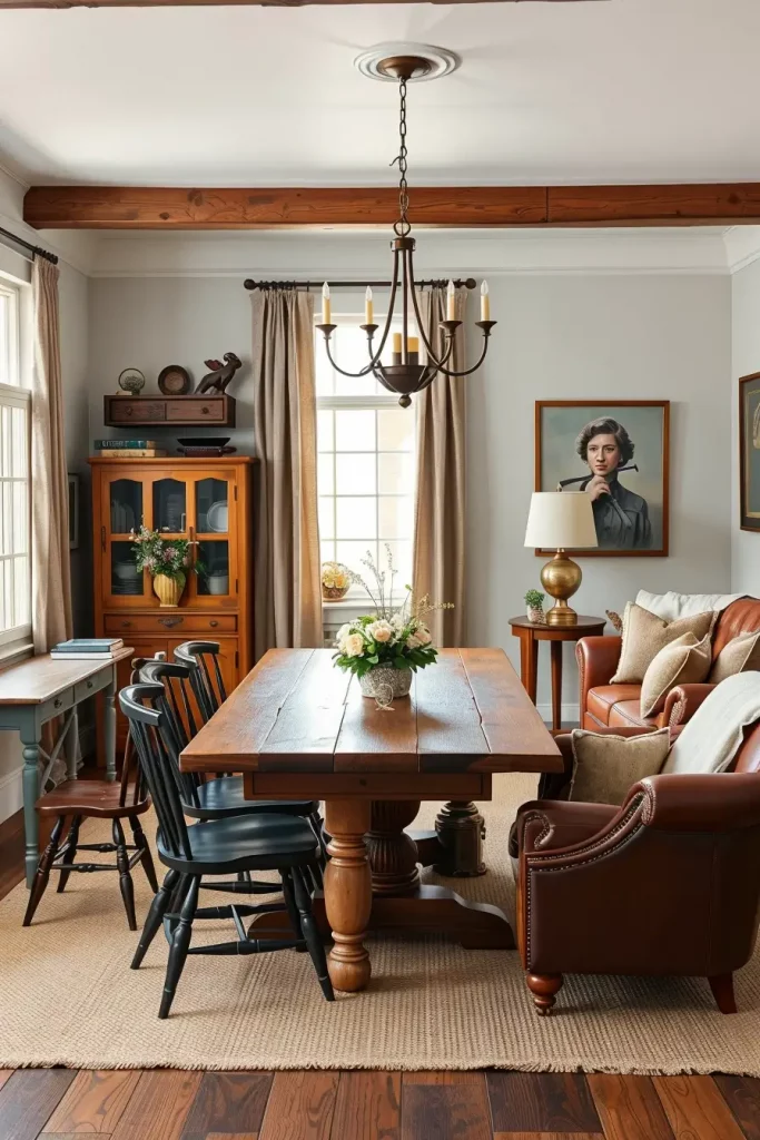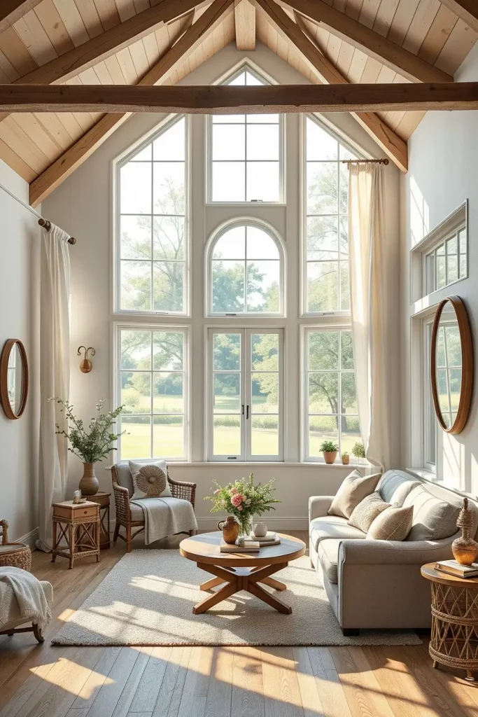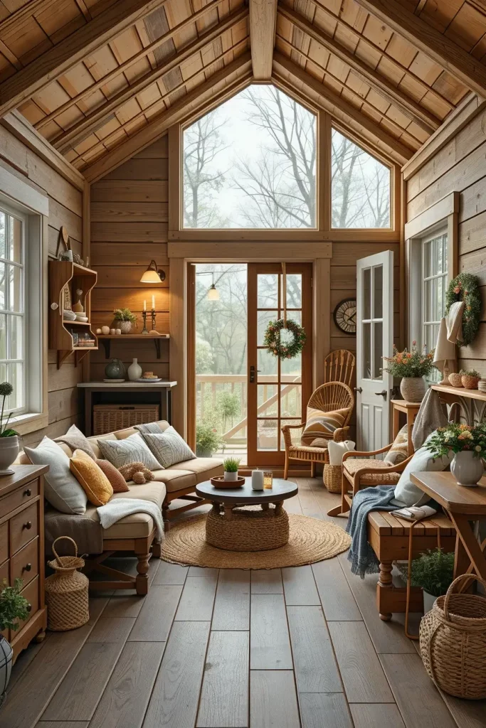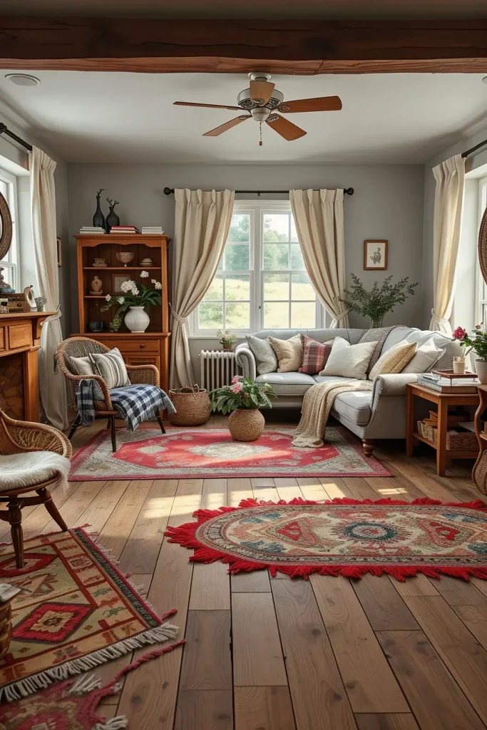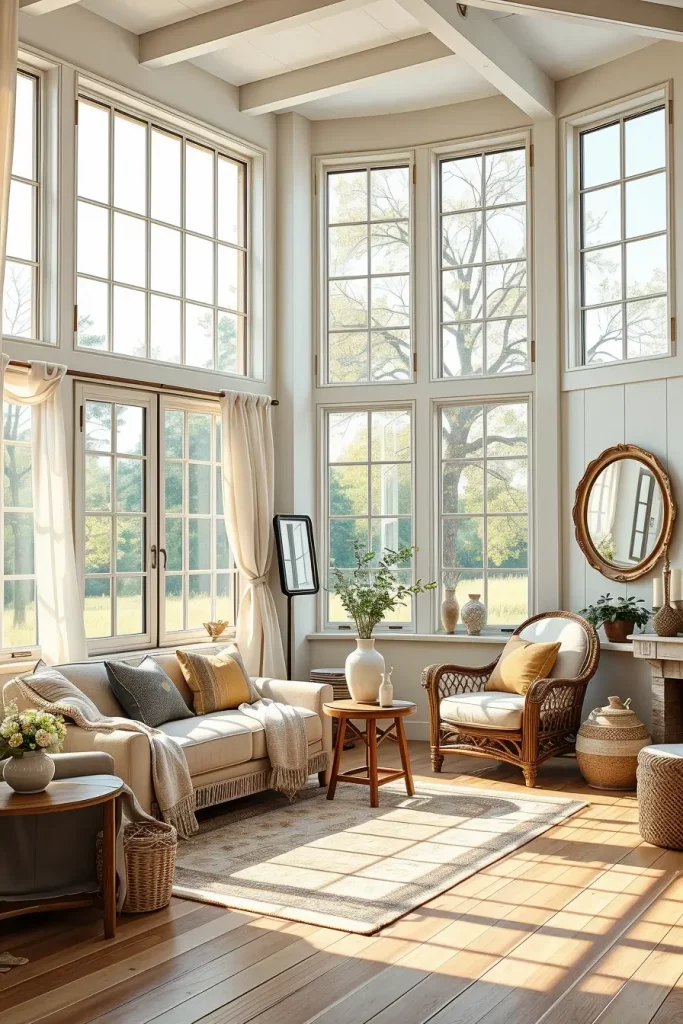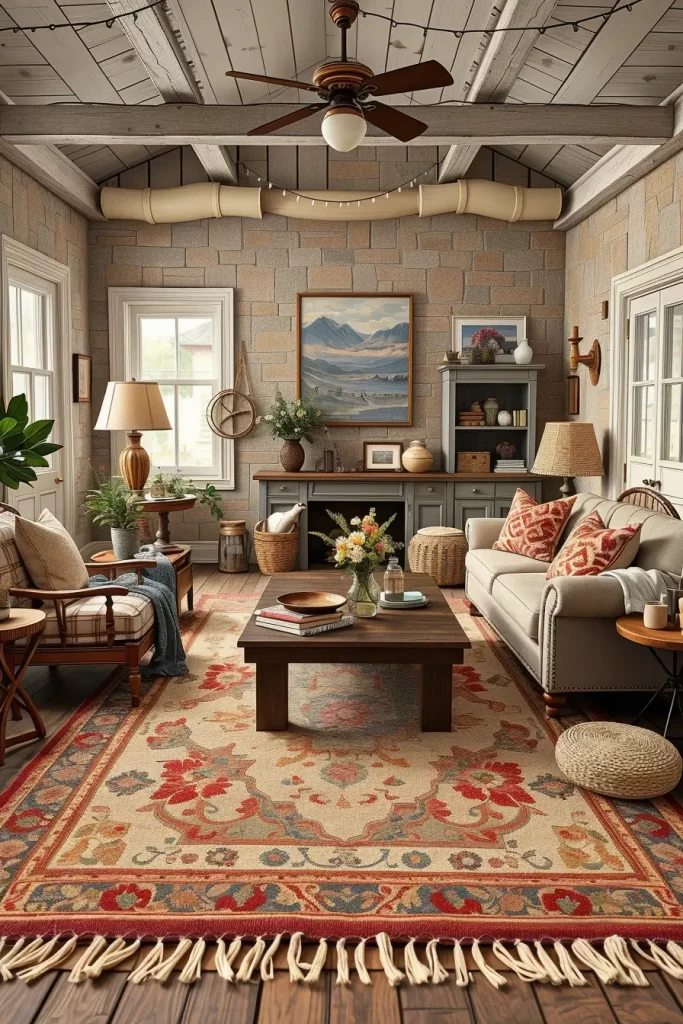 Furniture tends to be plain yet practical- imagine sturdy wooden tables, woven baskets and handmade chairs. The area may be completed with the decorative items such as old lanterns, pottery, and fresh flowers. These little details make each corner look curated but not at the expense of the casual, homey feel.