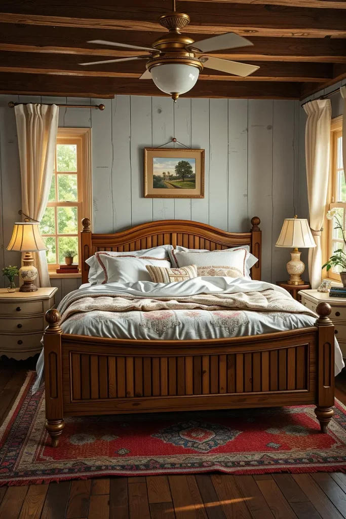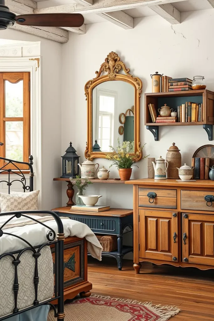 A farm cottage style is made authentic with the use of antiques. I would always suggest having vintage pieces mixed with modern pieces to give the space some history but not too much. Old mirrors, clocks or trunks add character that cannot be duplicated with new pieces.
