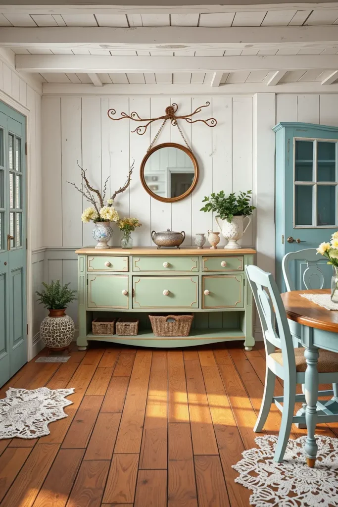 My favorite items are chairs, dressers and sideboards that have a chalk-painted finish. They look exquisite with rustic wooden floors and textured fabrics. To make it more special, it is possible to add some vintage hardware like ceramic knobs or iron handles to each piece and make it special.