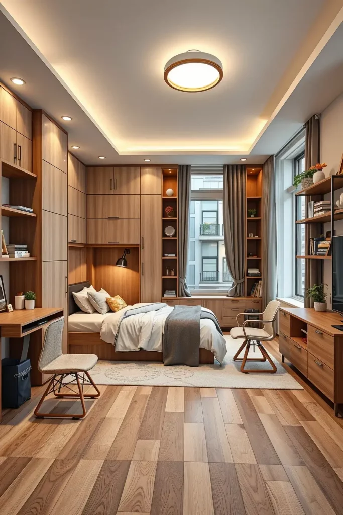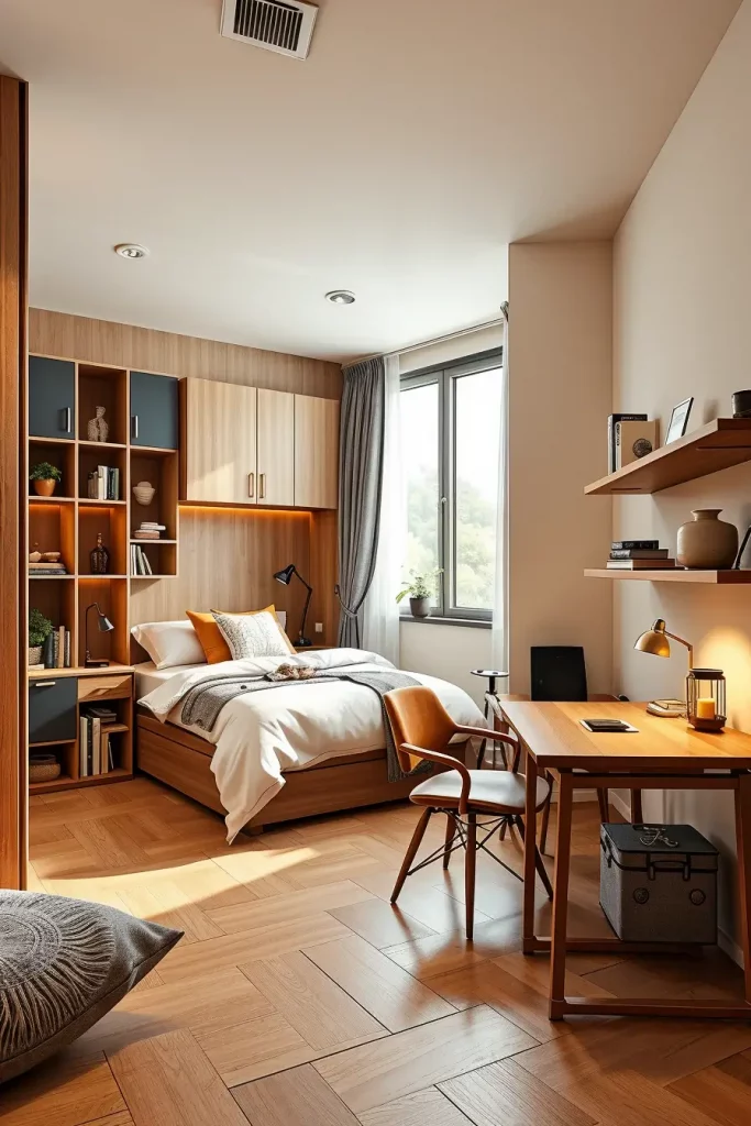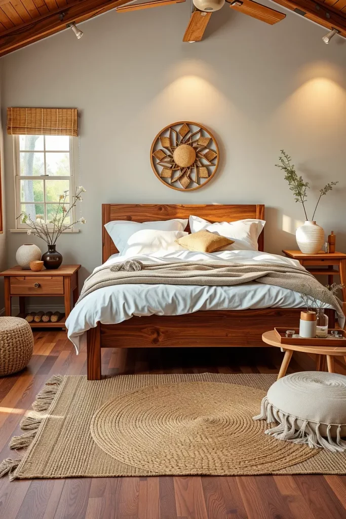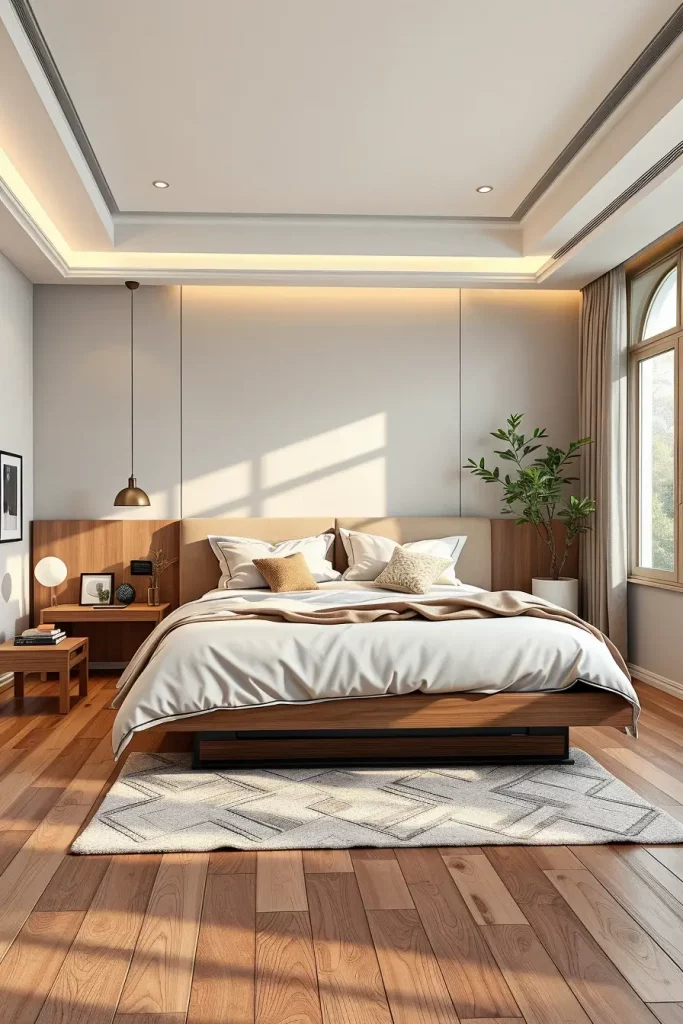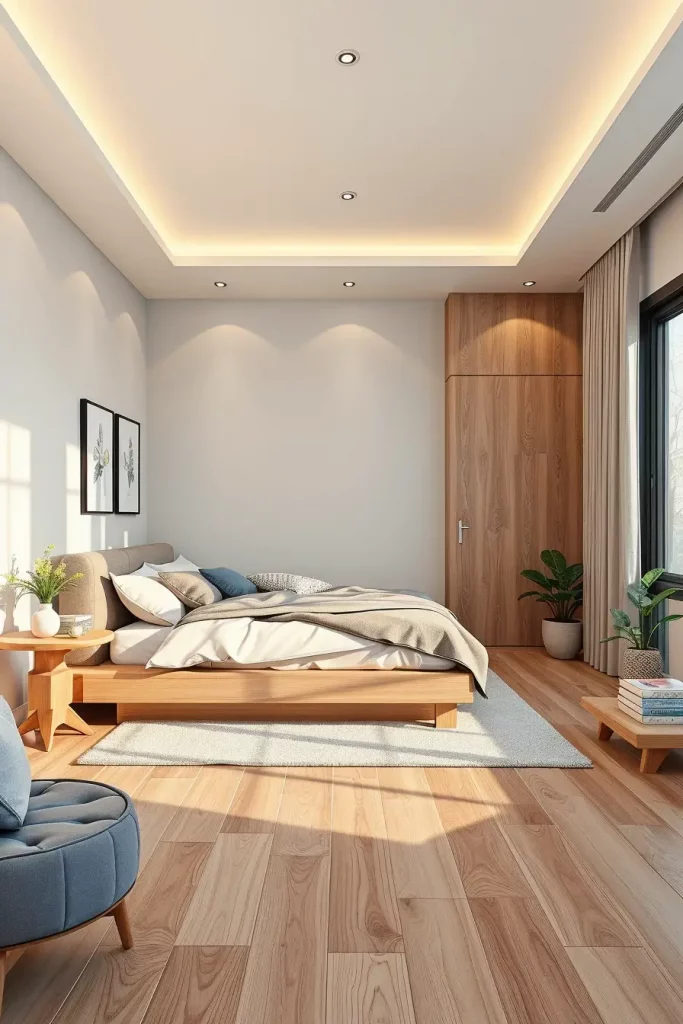 A platform bed with built-in storage, bedding in breathable fabrics, and smart lighting systems that automatically change depending on the time of the day are some of the features that I tend to prefer in this kind of room. Wall finishes incline towards soft neutral paint or textured wallpapers having limited patterns. The use of sustainable wood flooring or bamboo furniture is also added to the eco-friendly factor.