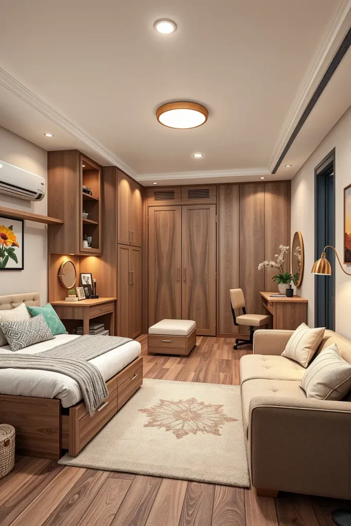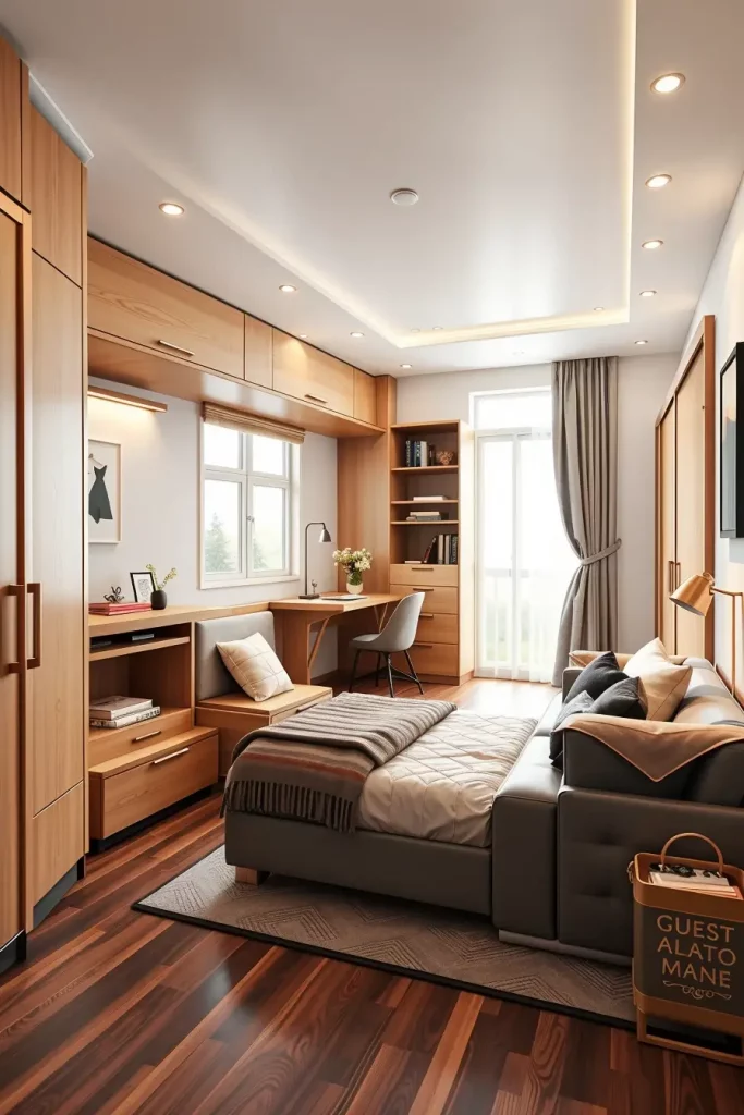 I usually incorporate storage benches at the bottom of the bed, expandable tables and convertible sofas. Wall mounted desks fit well in smaller areas and foldable chairs can be folded when not in use. This is aimed at providing flexibility to the guests without crowding the room.