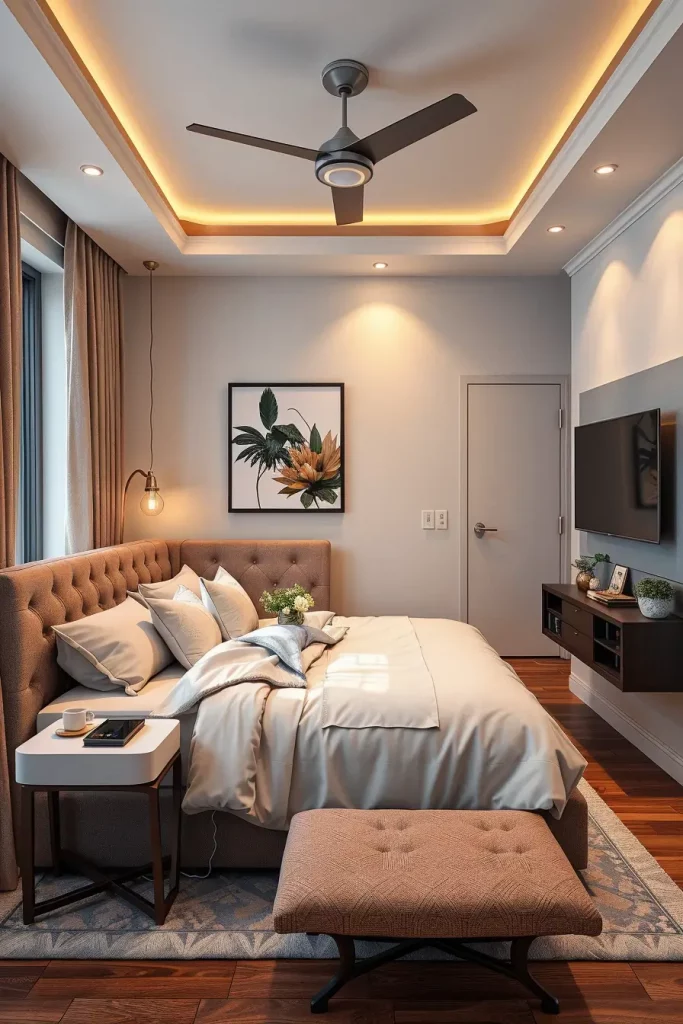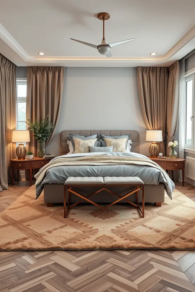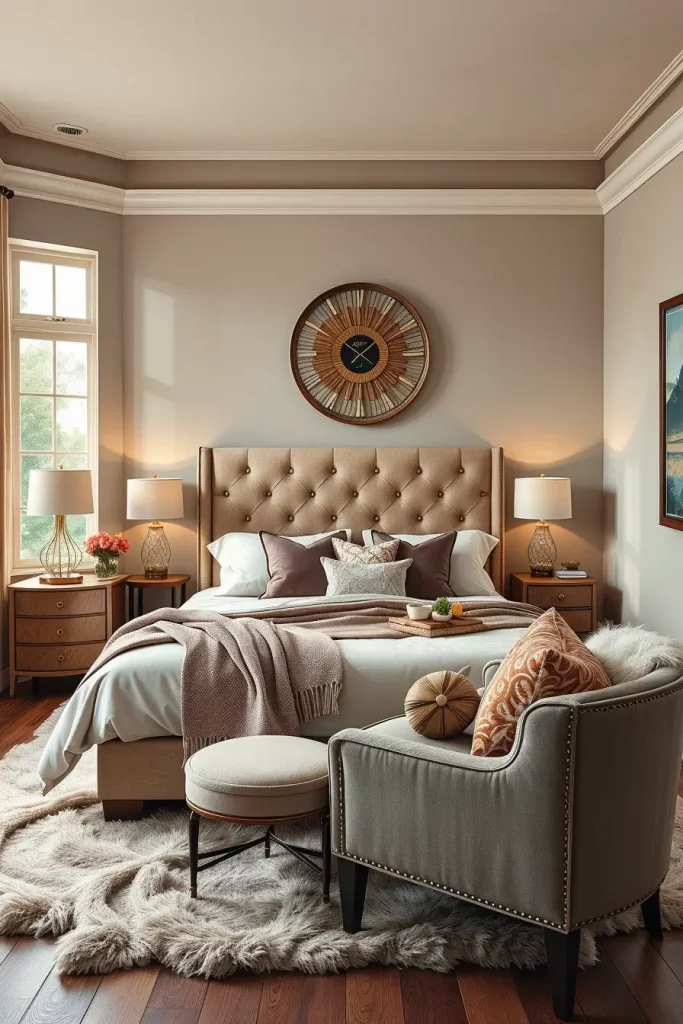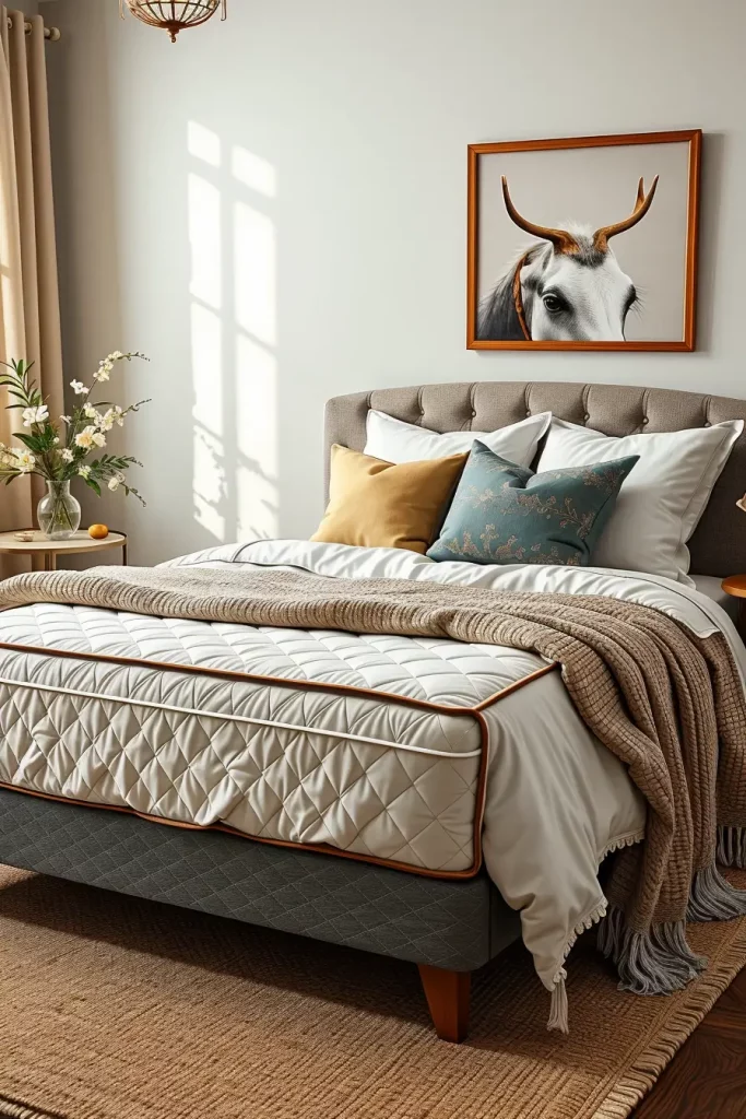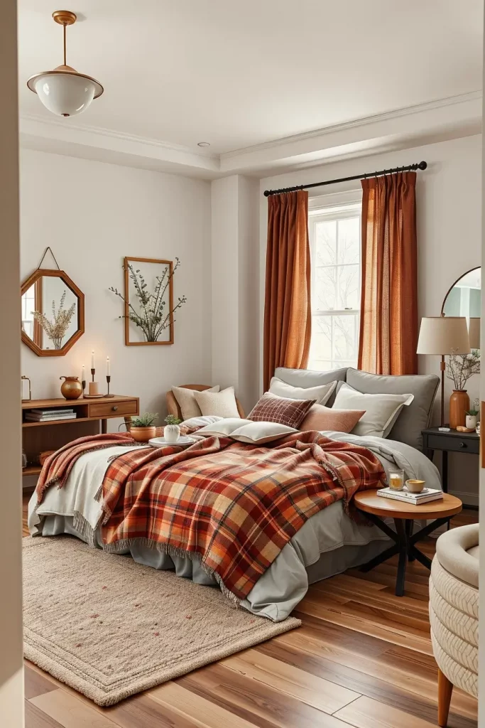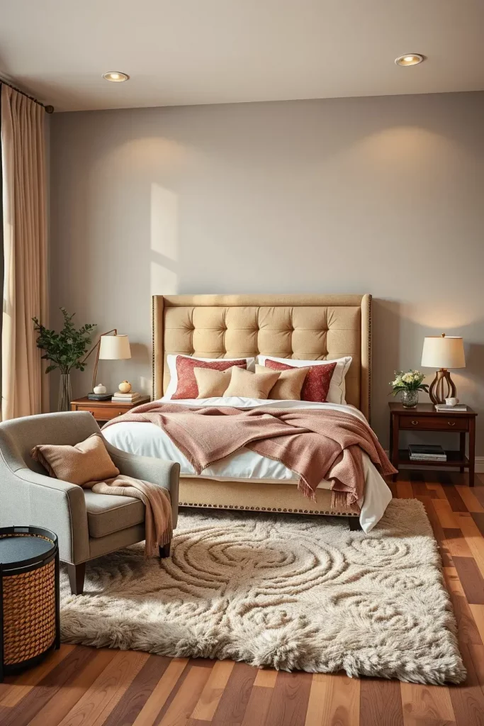 I would recommend neutral basics in furniture- a modern upholstered bed and plain nightstands so that the accessories can be changed with the season. Thick throws, plaid pillows and layered bedding are used in winter. During spring, the atmosphere is lighthearted with light cottons, floral artwork, and pastel linens. In autumn, the mood can be created with the help of rich-colored curtains or a pumpkin-colored quilt. These minor exchanges make the design flexible without the need to make significant alterations.