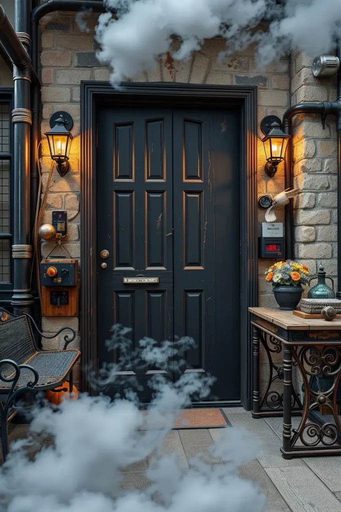 Halloween decor does not have to be all about the traditional stuff, a lot of my clients are looking to be grittier. This is why industrial-inspired haunted entryways are turning out to be a significant theme of Halloween door ideas 2025. I begin with such things as raw concrete, exposed metal hardware, and raw textures. These are the ideal setting to create spooky, factory-type Halloween effects.