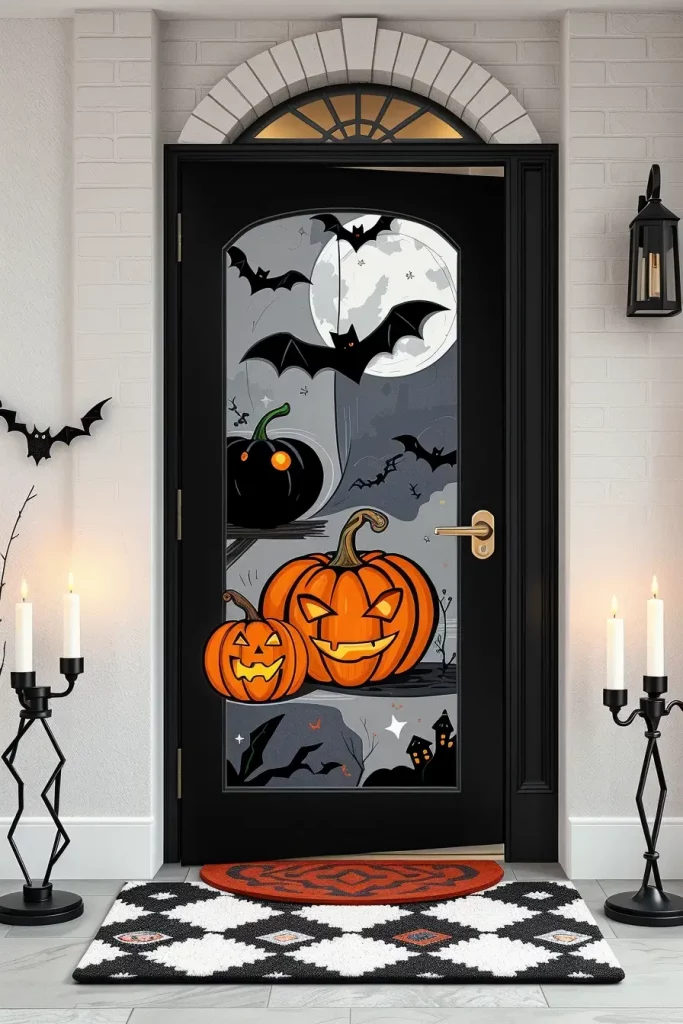 Asymmetrical Halloween Decor for Geometric Door Designs