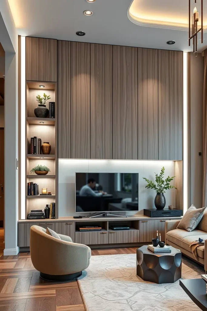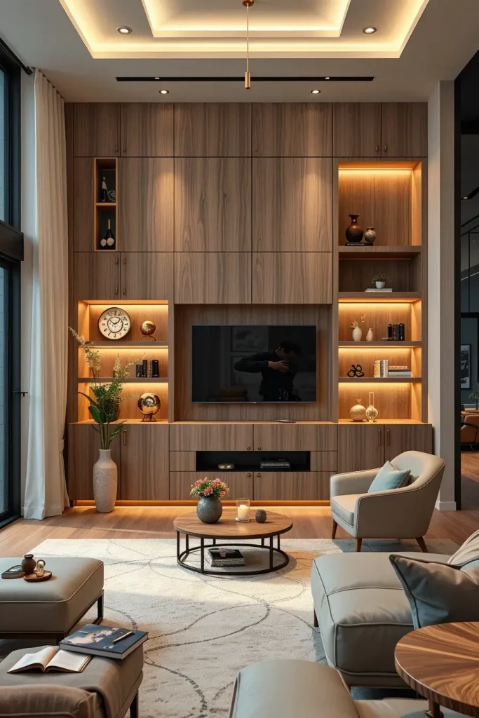 Intelligent luxury design has the characteristics of efficient space utilization. In the next year 2026, custom built in storage is a combination of functionality and fashion that fits perfectly into the interior of the living room. My usual styles of designing cabinets are with compartments that are hidden and that have recessed shelves as well as fluted wood surfaces which add to the clean and smooth circulation.