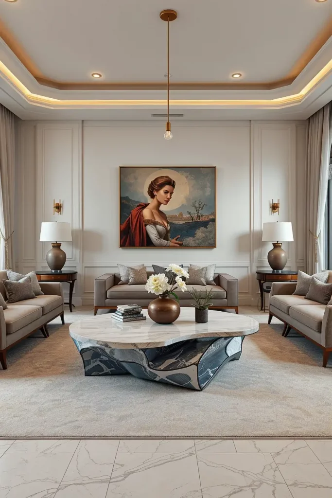 The coffee table has become an object of self-expression in the luxury living room. I would always recommend choosing one that is sculptural in nature, which is made out of such materials as marble, tempered glass, or polished wood with exaggerated geometric shapes. Tables in 2026 do not just work, but serve as anchor because they are pieces of art.