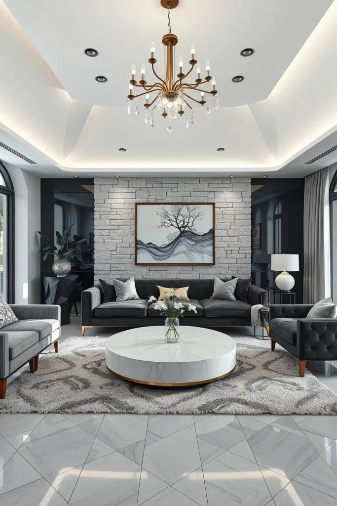 A black and white luxury living room is a classic as well – with simplicity, it exudes and expresses style without making it overboard. I have always adored the exactness and neatness that accompany black and white interiors. The designers in 2026 push this notion to the extreme by providing the design with softer tones of gray, beige, or white, where texture and contrast of materials make the design alive. The bright colors are not used, which enables the architectural features and high-end materials to shine.