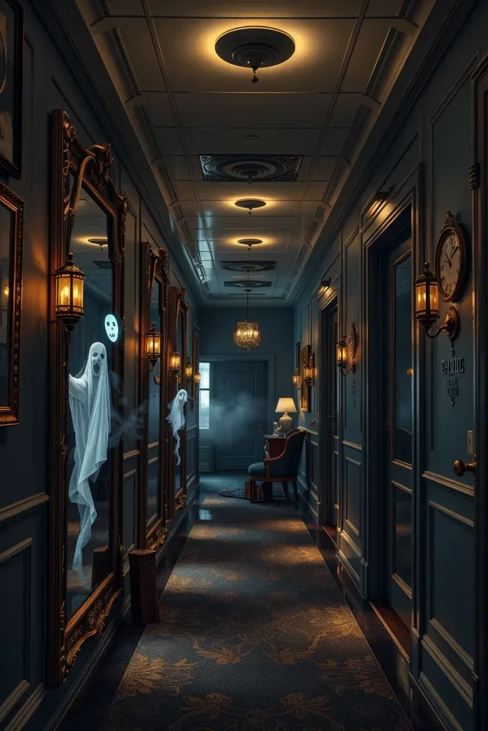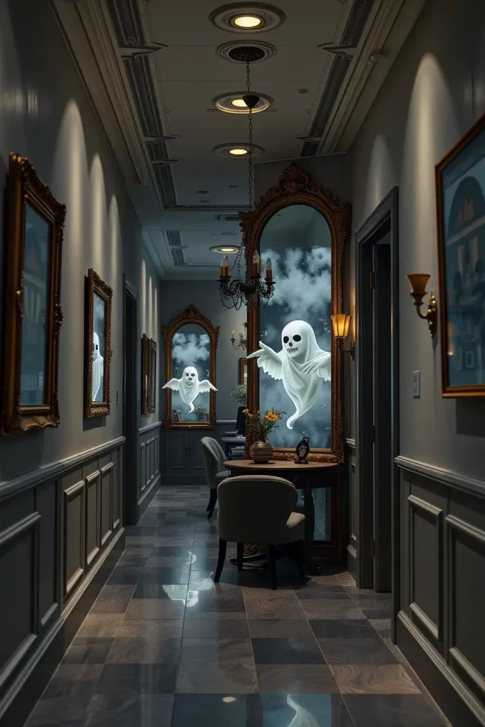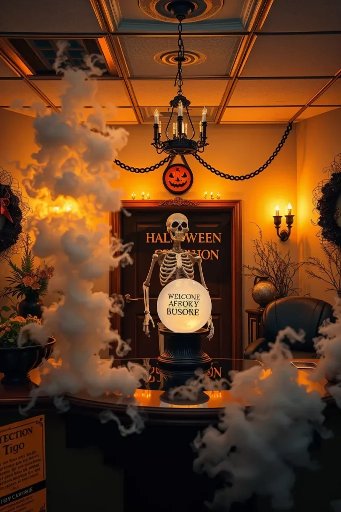 An unexpected yet enchanted method of decorating the office to celebrate Halloween is to use mystic mirror installations and fog effects. These items draw on traditional haunted house aesthetics and add an entirely new layer to your decoration- particularly in entryways or corners that are usually overlooked.