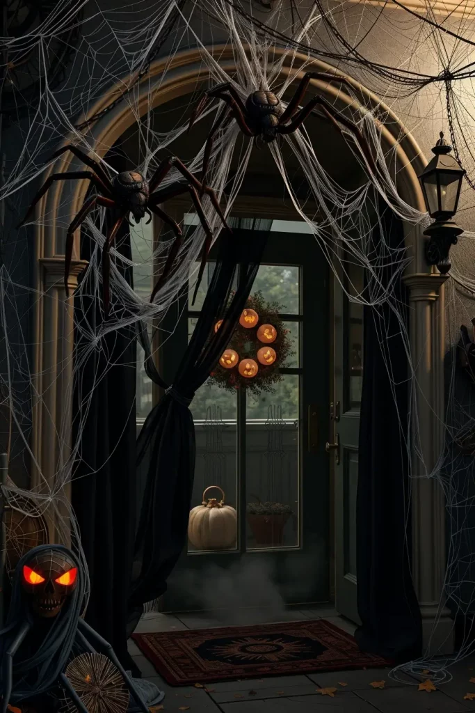 Doors are the first point of entry to your overall Halloween decoration plan, and there is nothing more dramatic than oversized spider webs. I would always suggest wrapping your entrance with webbing to give an immediate signal to visitors and workers that something scary is inside. It is impactful and installable.