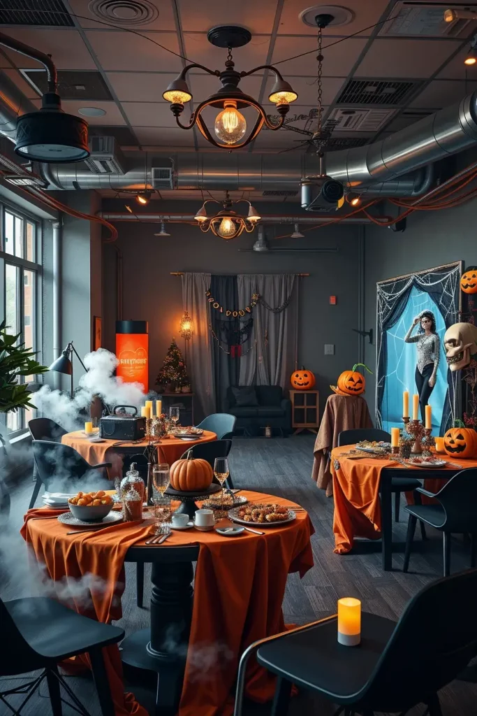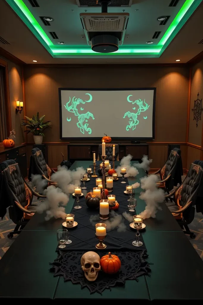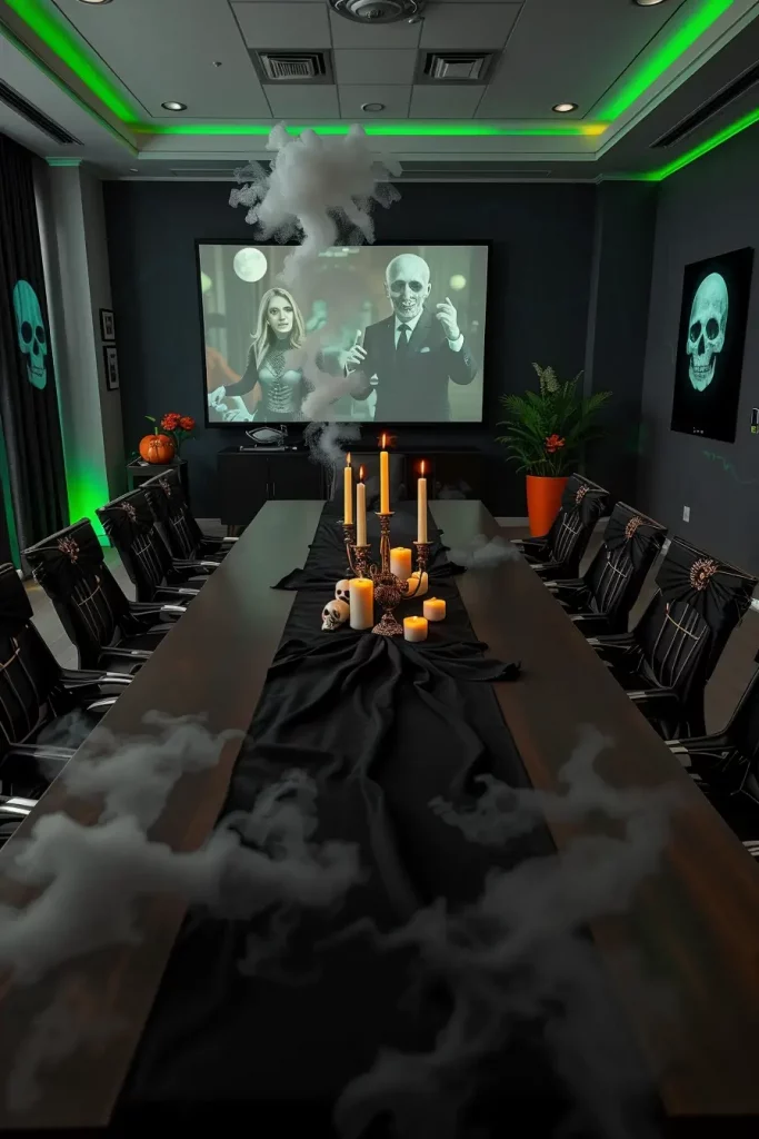 Conference rooms are ideal to have dramatic Halloween decorations. I would prefer to imagine such spaces as stage sets, which would be great to hold team meetings, parties, or surprise and delight calls to the clients. In 2025, the trends are themed backdrops, interactive lighting, and augmented reality props. Make it clean and cool. One should not forget about the main purpose of the room, so the decoration must be striking but detachable.