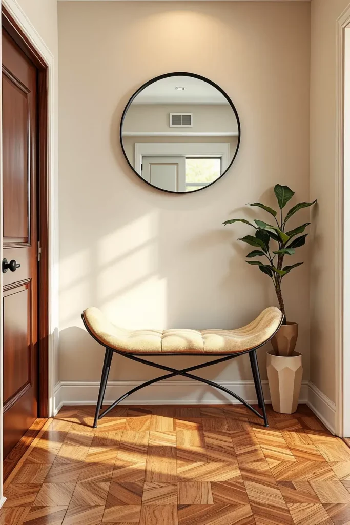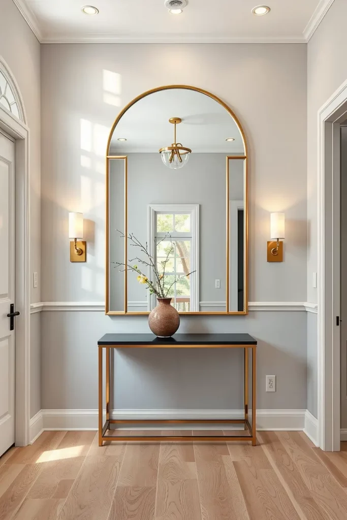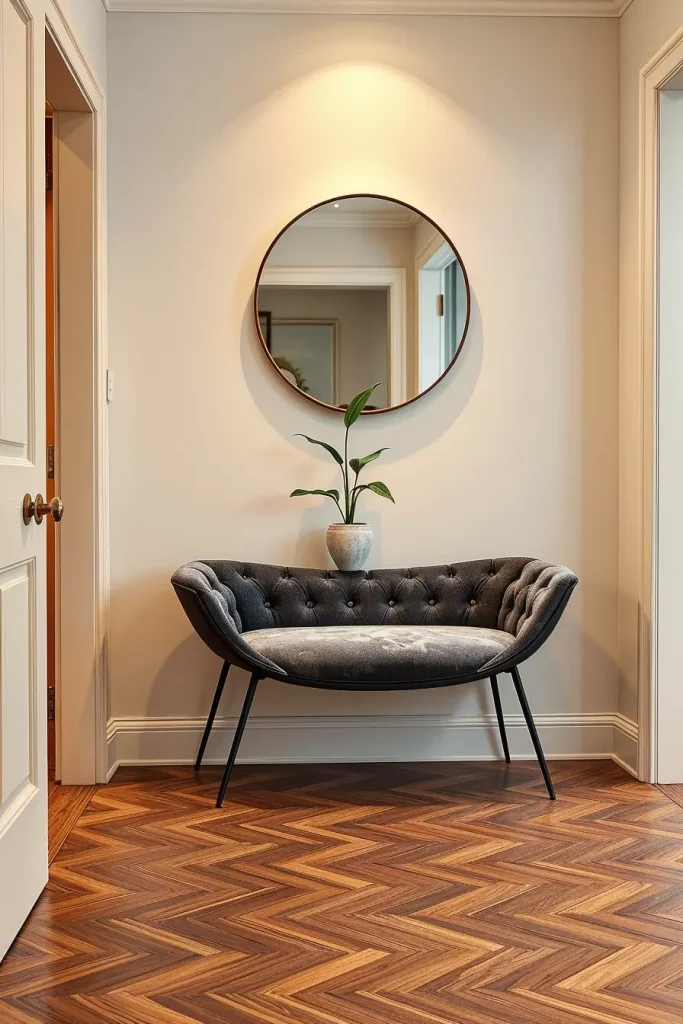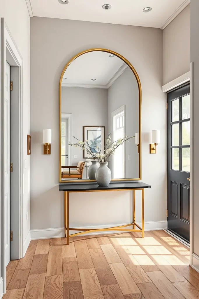 A big, bold mirror is something I think about when designing a small entrance hall. Object instantly expands the room, reflects light and helps make the area feel broader. A stylish mirror with a geometric or arched look gives your room a sculptural touch and is still useful day to day.