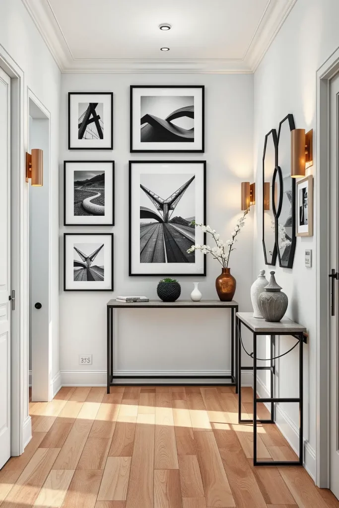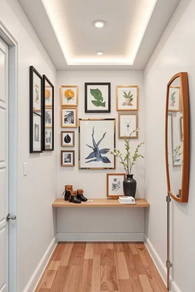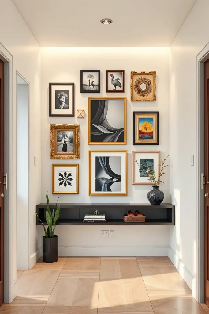 I’ve seen firsthand how a well-curated gallery wall can instantly give a small entrance hall depth and character. Whether you’ve picked wall art with a message or something unique, these will tell your story as soon as you get inside. I begin by picking a matching group of colors to avoid making the room cluttered, when space is tight. Evenly spacing your framed photos on a grid or putting them in a lively cluster can improve the atmosphere of a plain section of the house.