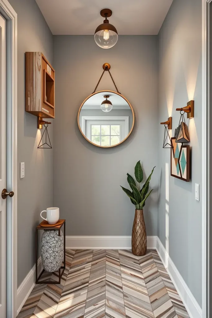 I find it exciting that geometric patterns provide a lot of design freedom. Choosing a triangular wall sconce and hex tile backsplash really enhanced my client’s neutral hallway. The key is not to make your theme too strong; a single item can do the trick.