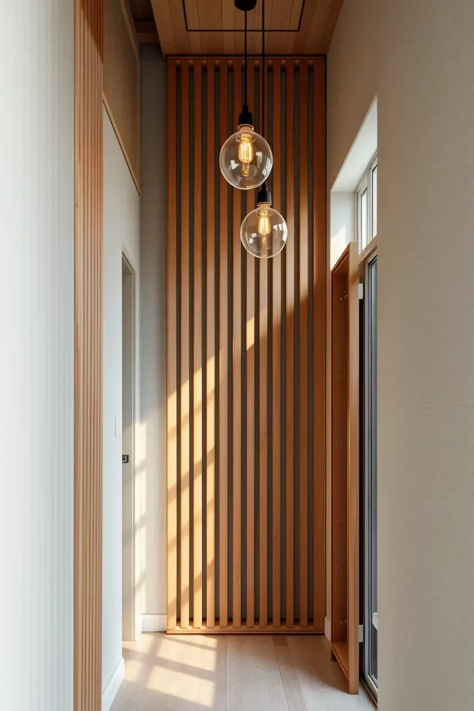 When you have only one advantage, use it to get up high. In some of my projects, the hall was almost like a tunnel, but by placing vertical items above, I made the area feel like it was meant to be there. Tall items such as vertical slats, wall paneling or large coat racks can help fill up the height in your space.