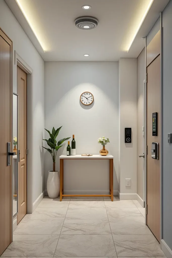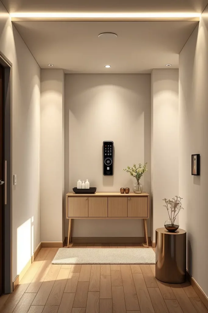 Contemporary small entrance halls are packed with smart ideas. By adding motion sensor lights, smart locks and secret charging places, my goal was to give modern style to tiny entries. They are not very noticeable but work well, helping you keep life clutter-free.